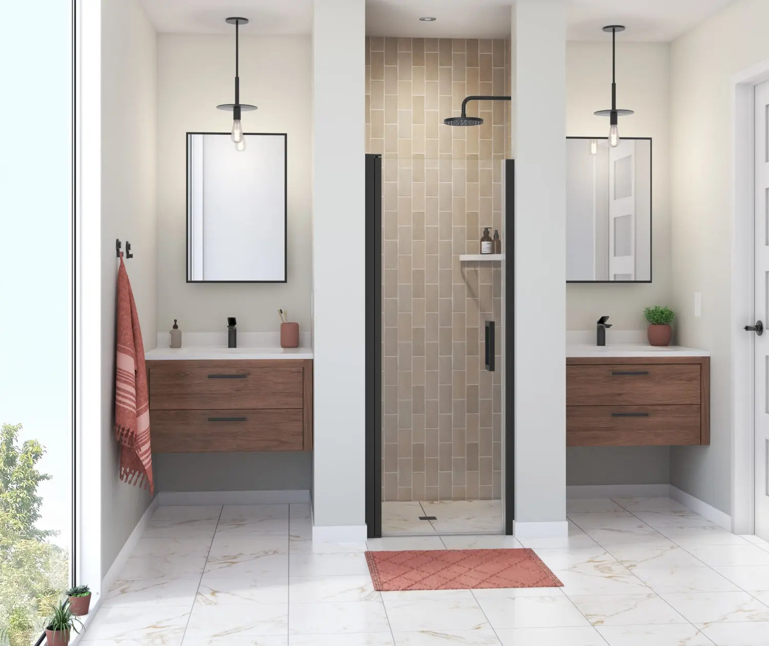 Maax Manhattan 25-27 x 68 in. 6 mm Pivot Shower Door for Alcove Installation with Clear glass & Square Handle in Matte Black 138261-900-340-101