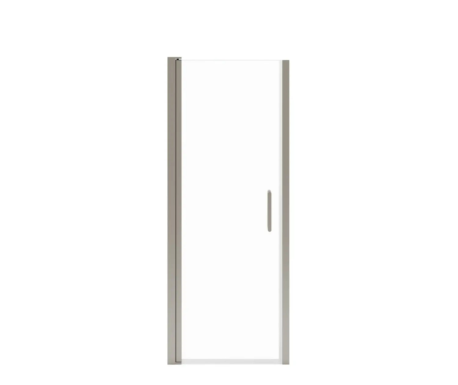 Manhattan 27-29 x 68 in. 6 mm Pivot Shower Door for Alcove Installation with Clear glass & Round Handle in Brushed Nickel