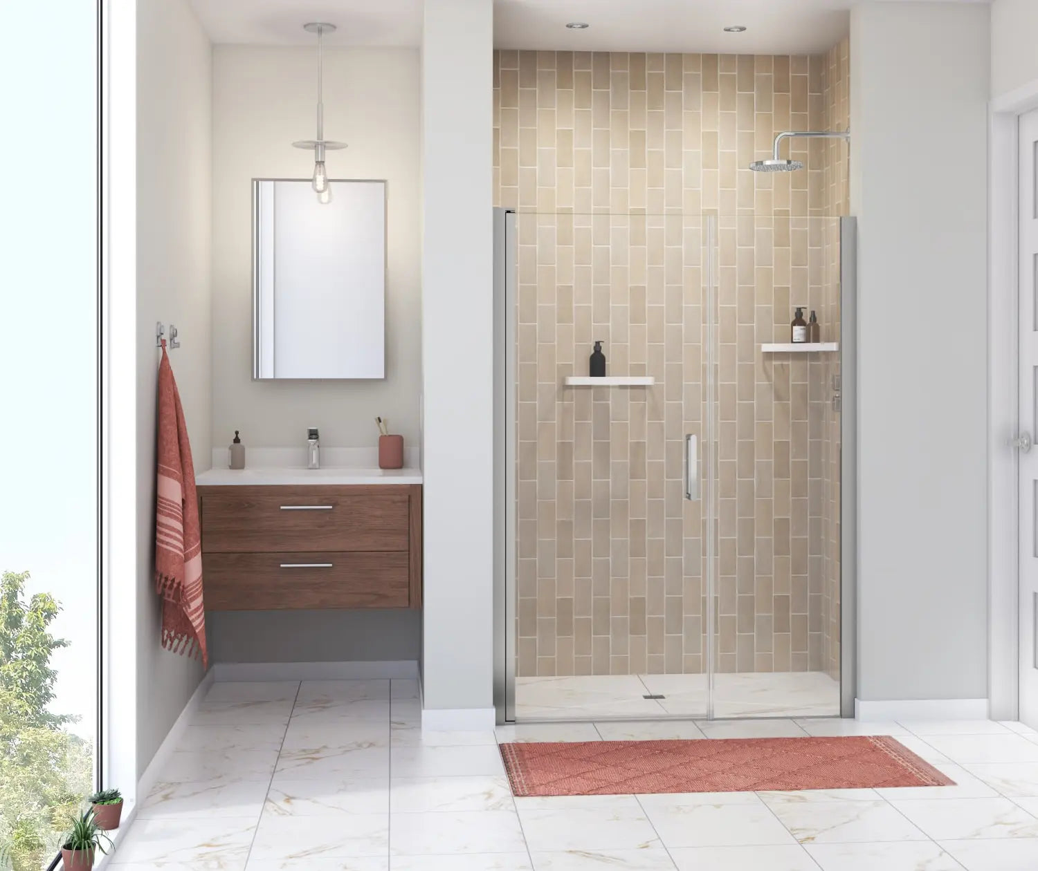 Manhattan 49-51 x 68 in. 6 mm Pivot Shower Door for Alcove Installation with Clear glass & Round Handle in Chrome