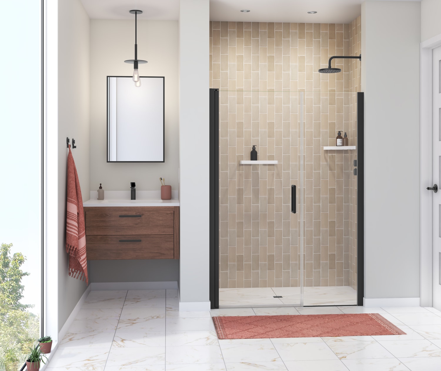 Manhattan 51-53 x 68 in. 6 mm Pivot Shower Door for Alcove Installation with Clear glass & Round Handle in Matte Black