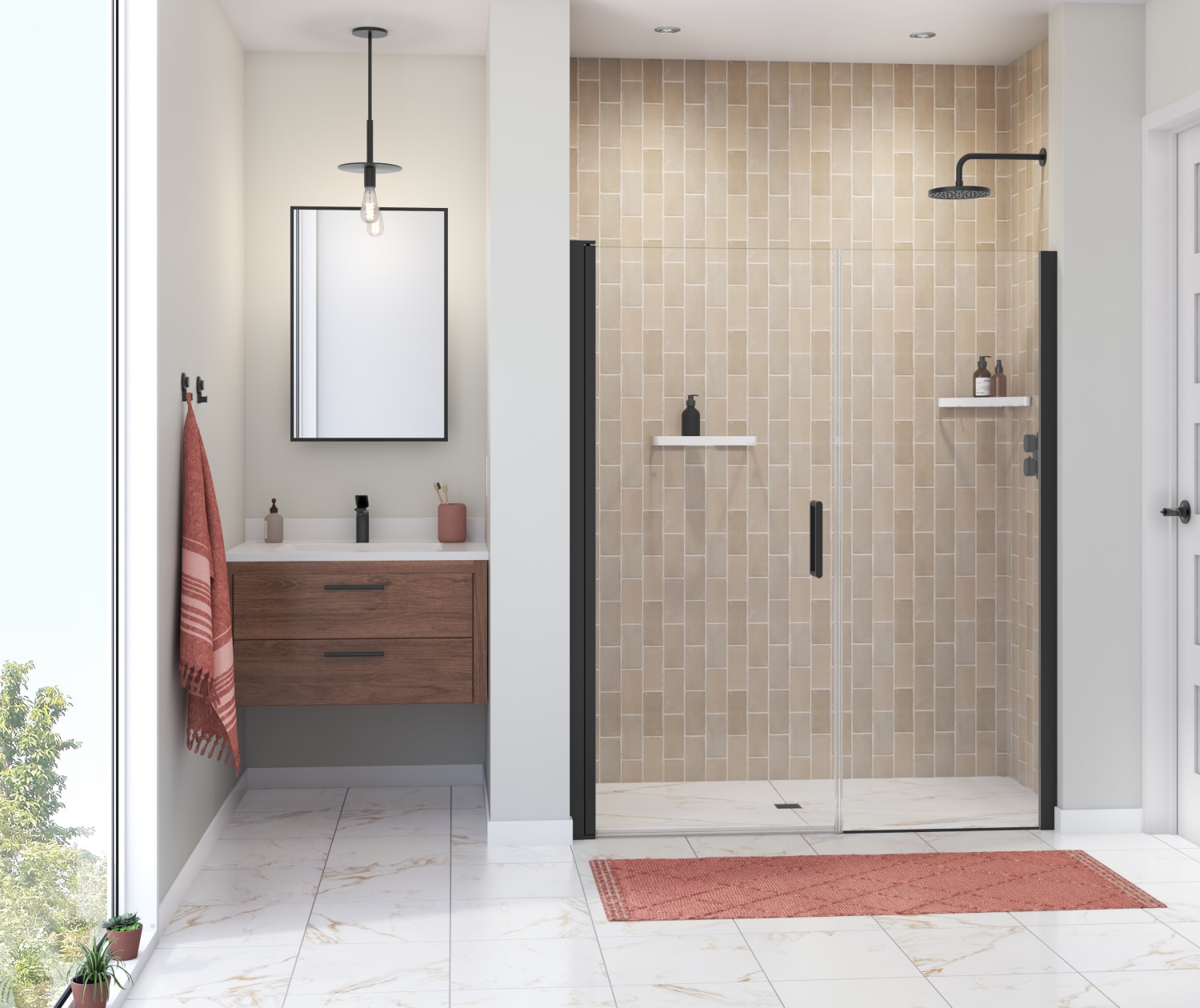 Manhattan 53-55 x 68 in. 6 mm Pivot Shower Door for Alcove Installation with Clear glass & Round Handle in Matte Black