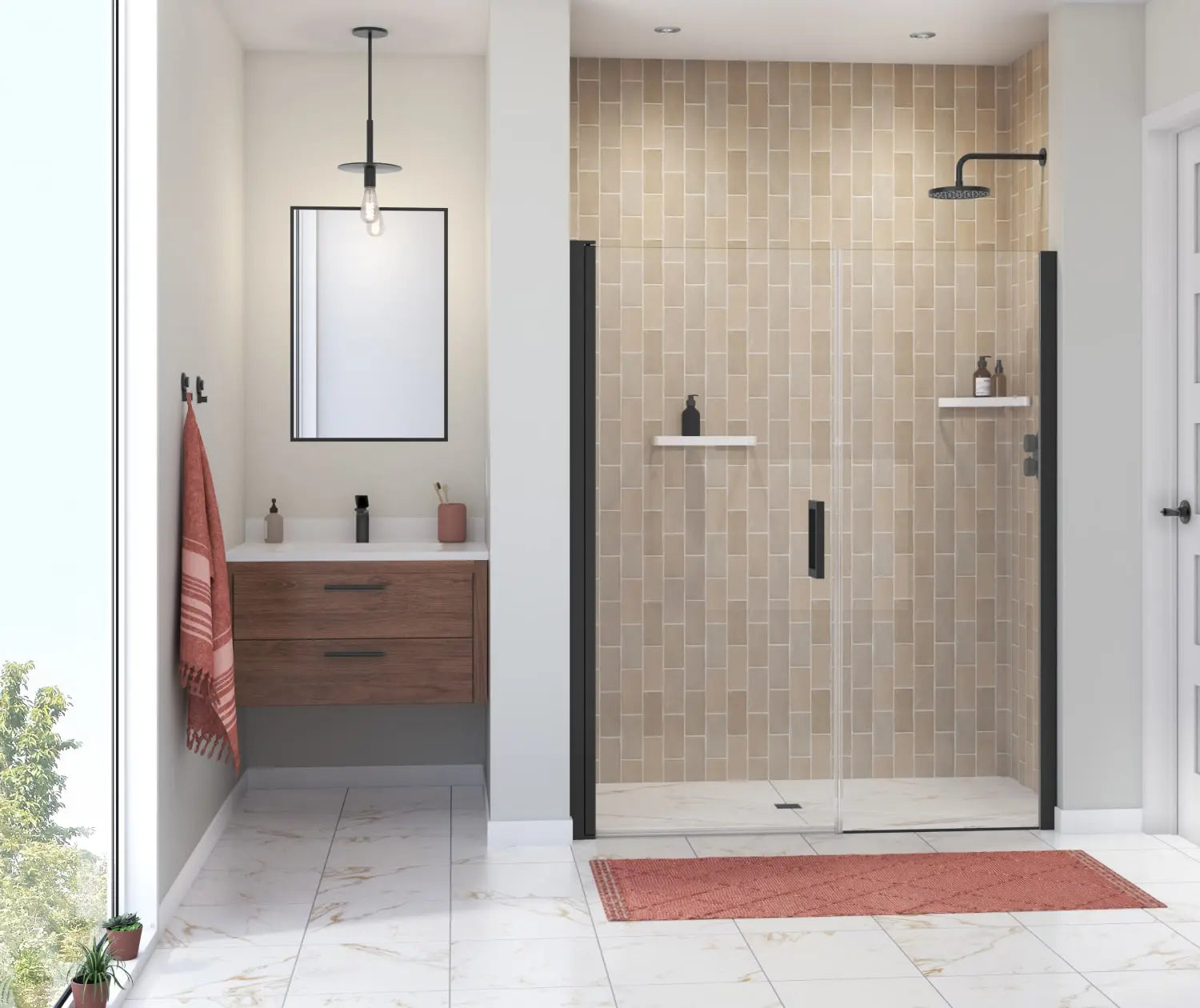 Maax Manhattan 57-59 x 68 in. 6 mm Pivot Shower Door for Alcove Installation with Clear glass & Square Handle in Matte Black 138277-900-340-101