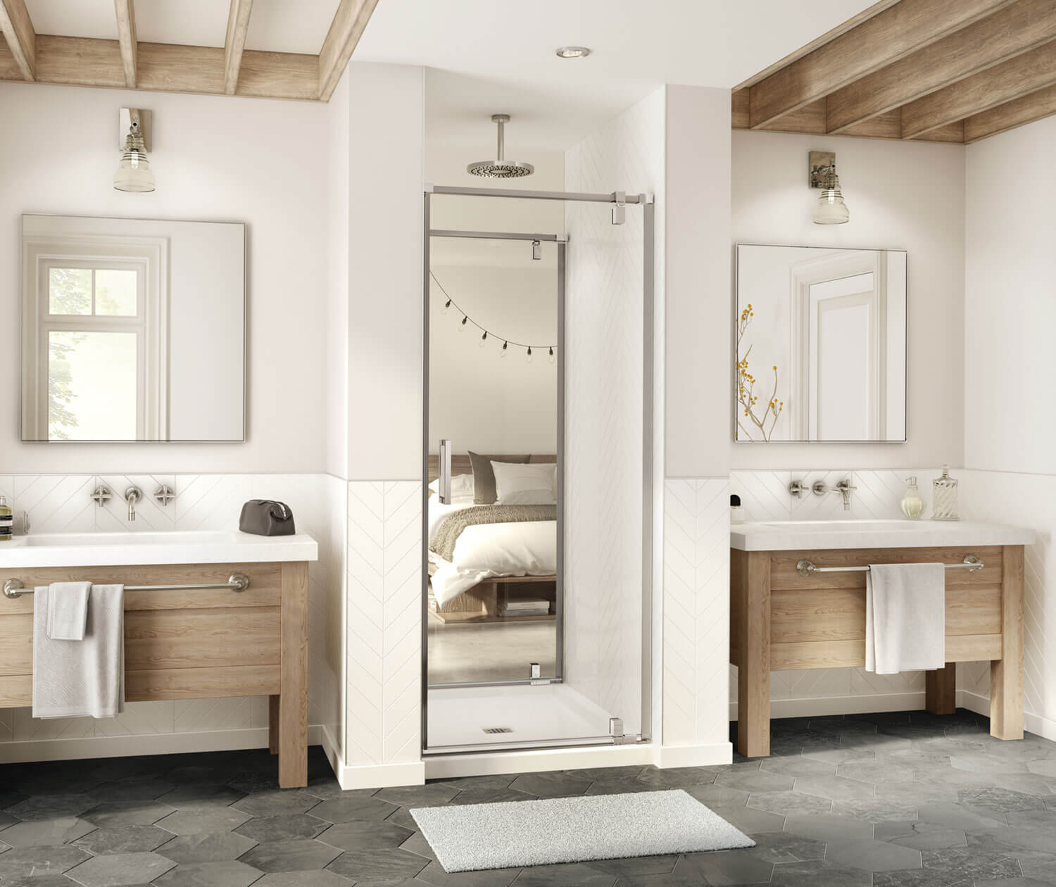ModulR 2 32 x 78 in. 8mm Pivot Shower Door for Tunnel Installation with Clear glass in Brushed Nickel