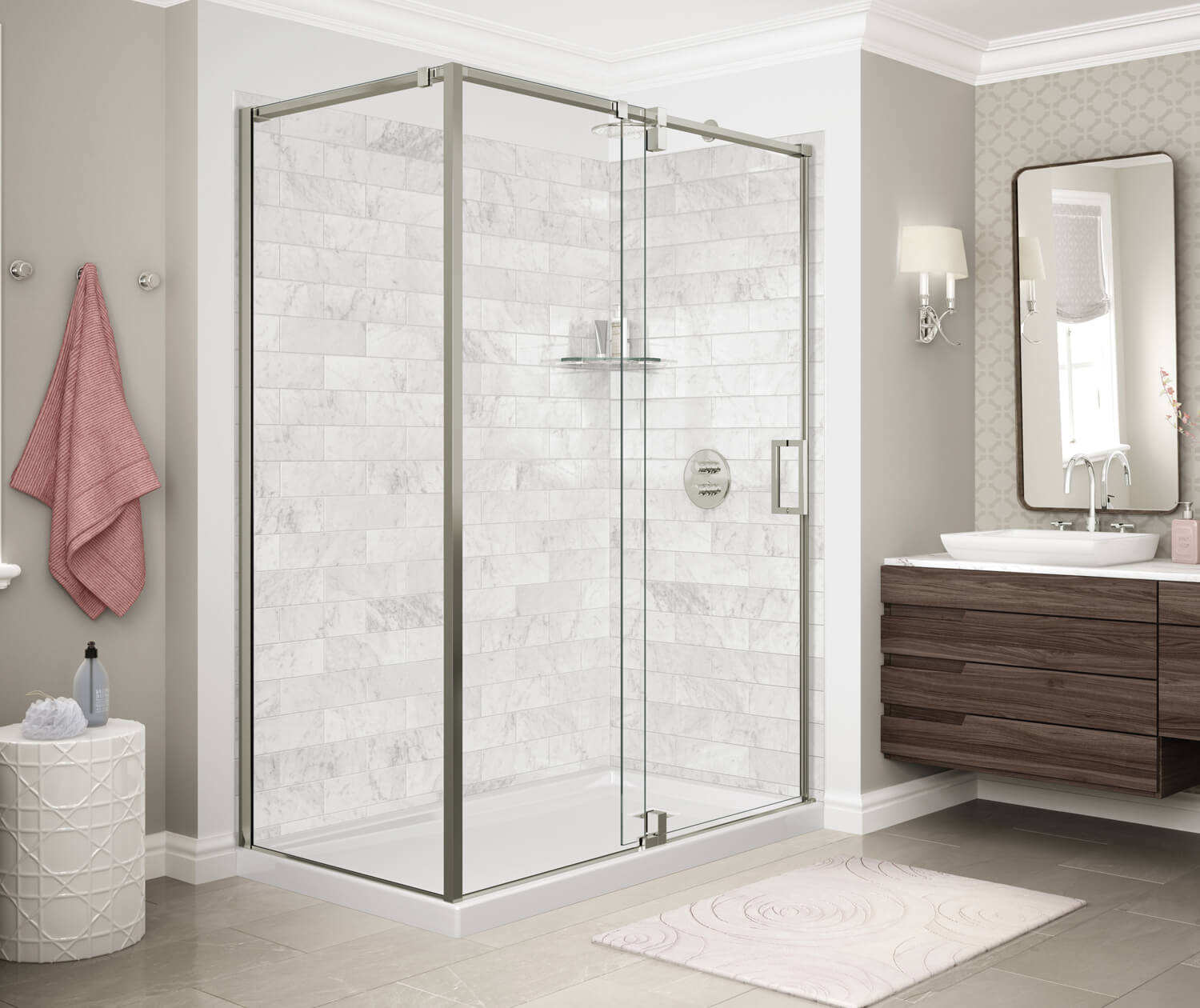 ModulR 60 x 36 x 78 in. 8mm Pivot Shower Door for Corner Installation with Clear glass in Brushed Nickel
