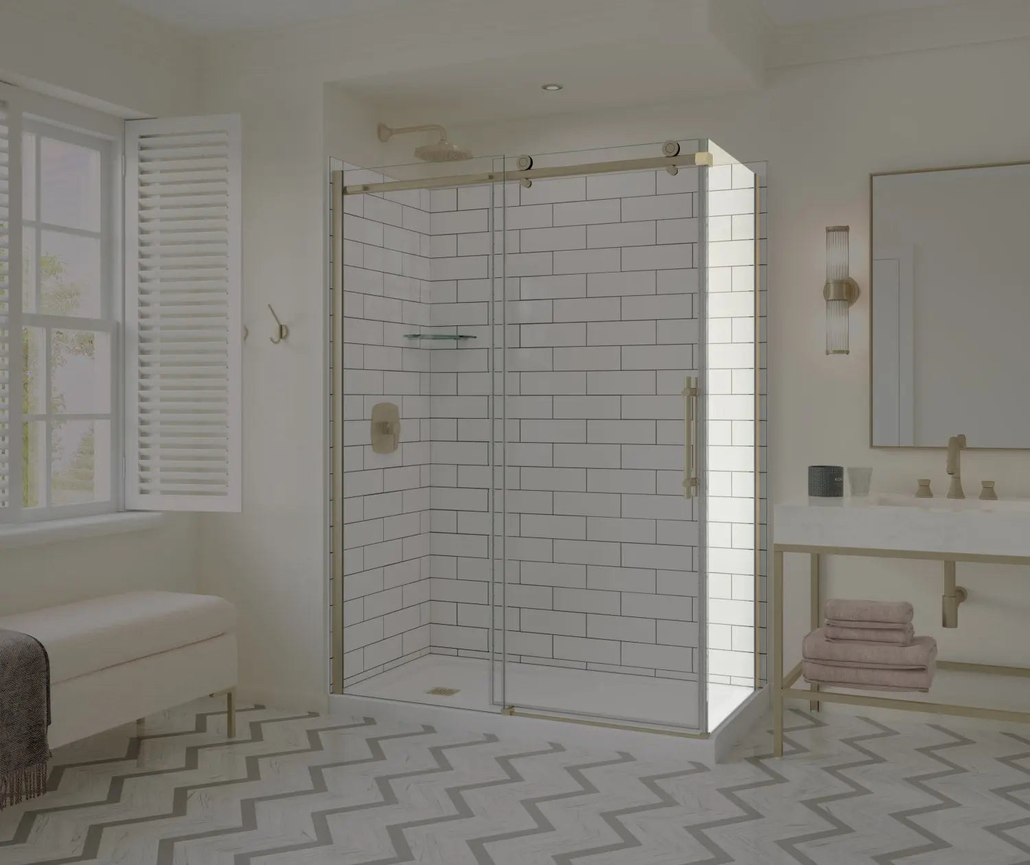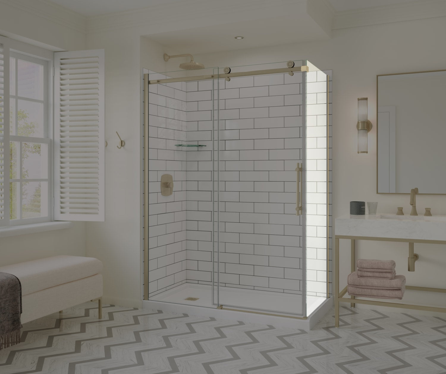 Odyssey SC Return Panel for 32 in. Base in Clear glass in Brushed Gold