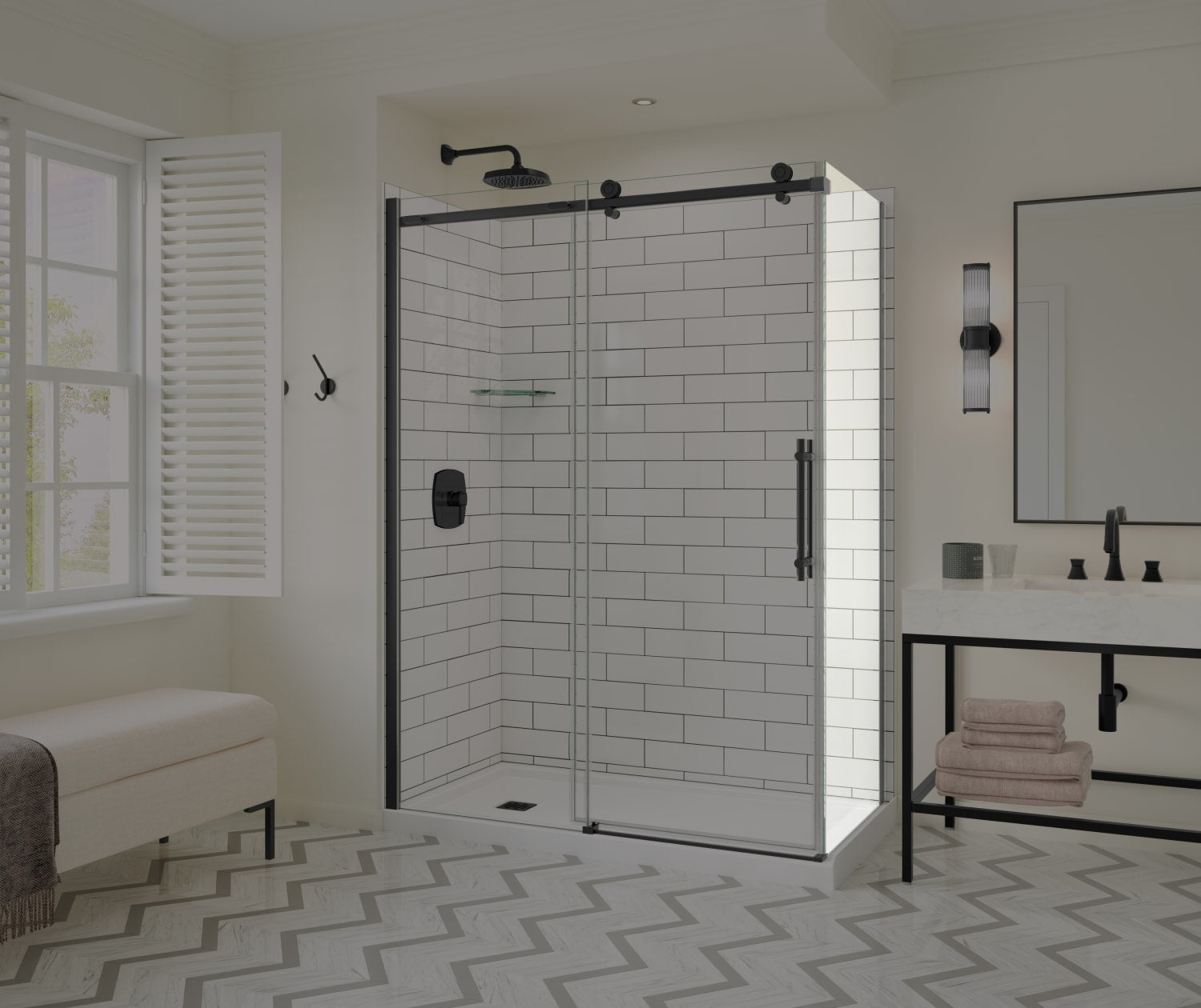 Odyssey SC Return Panel for 32 in. Base in Clear glass in Matte Black