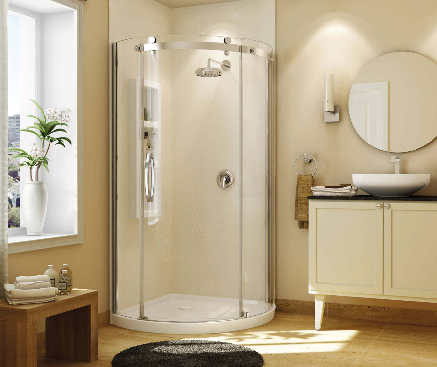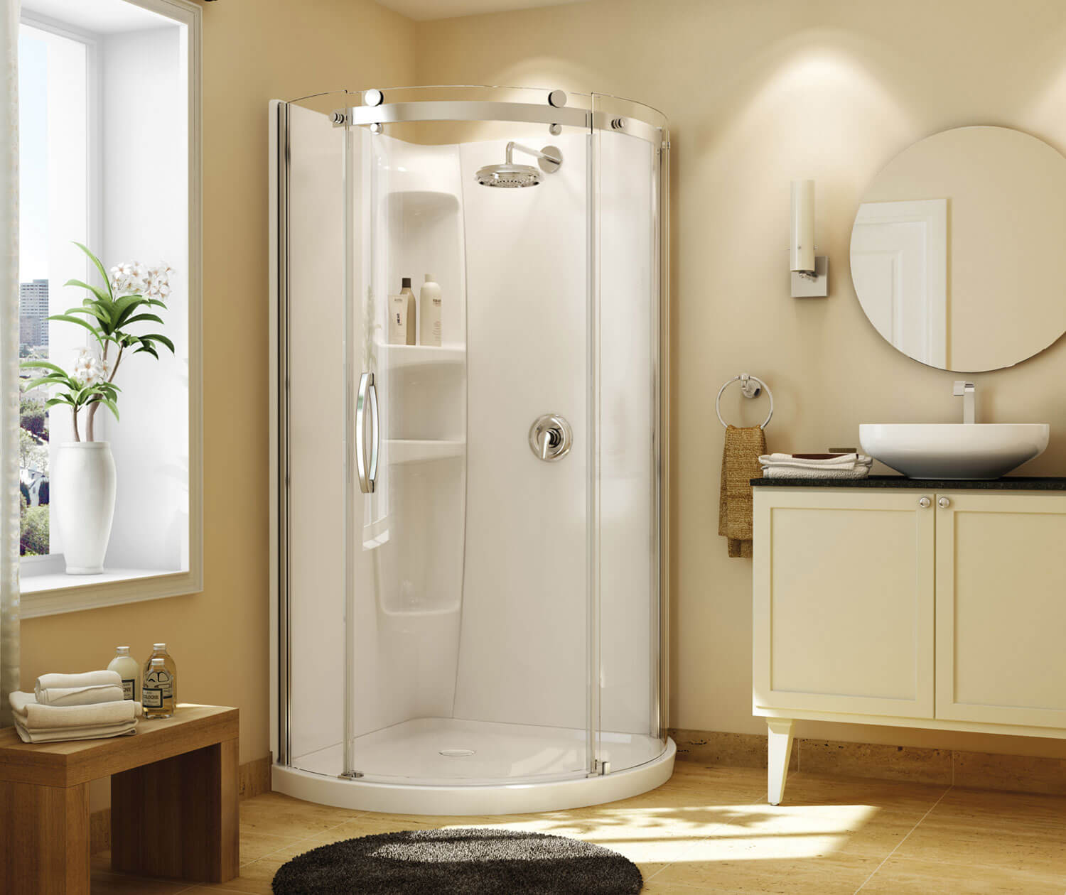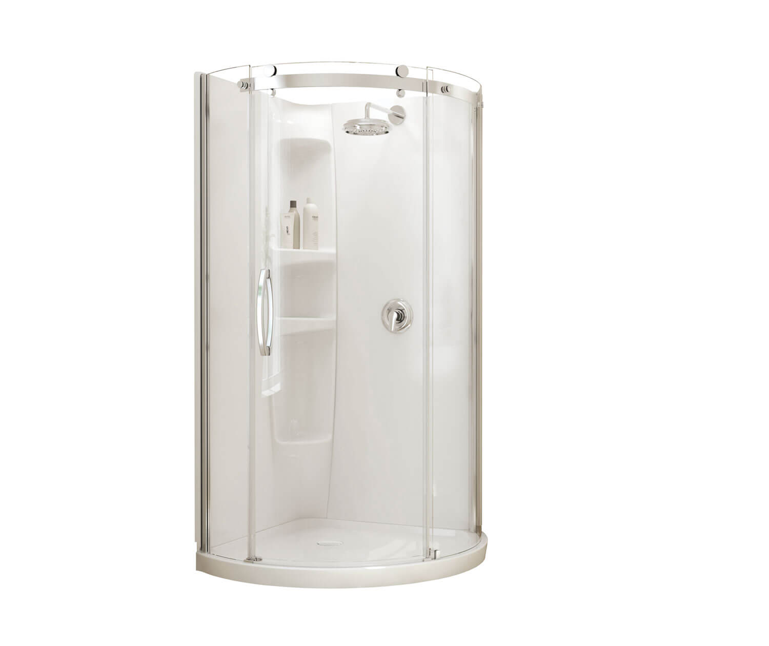Maax Olympia Round - Left Opening 36 x 36 Acrylic Left-Hand Drain Shower Kit in White with Clear glass in Chrome 105760-000-001-101