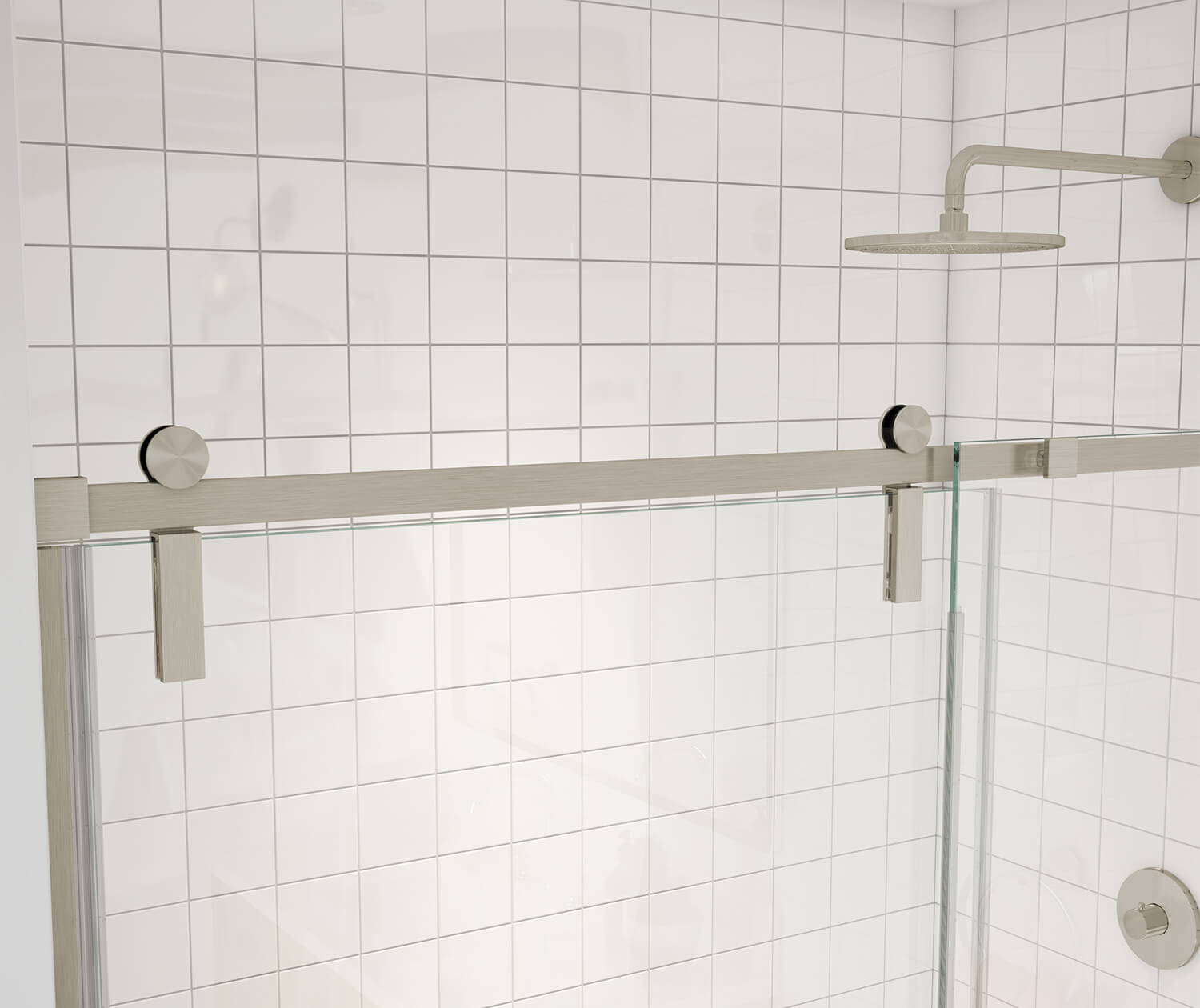 Maax Outback 55 ¼ - 58 ½ x 70 ½ in. 8mm Sliding Shower Door for Alcove Installation with Clear glass in Brushed Nickel 137681-900-305-000