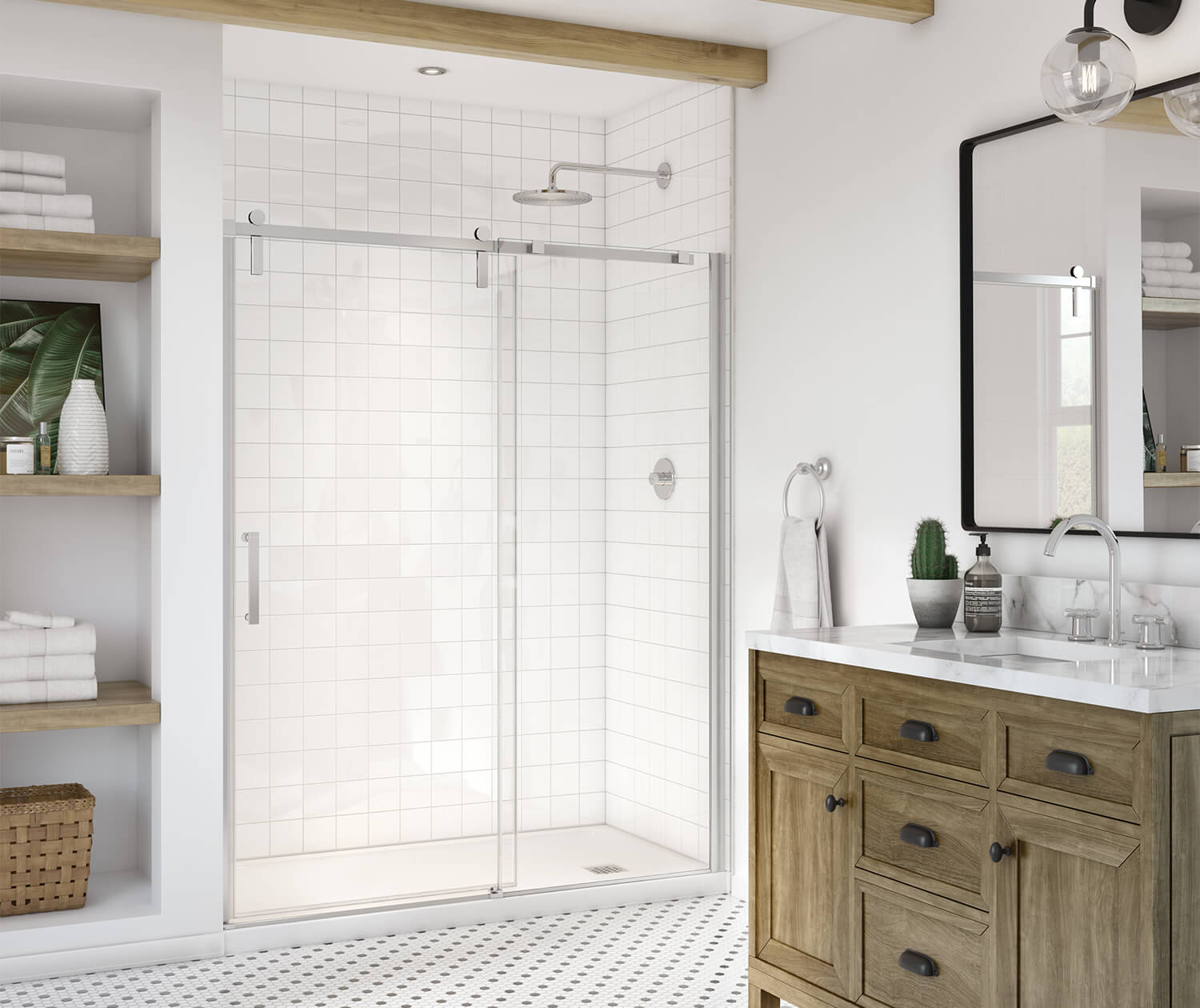 Maax Outback 55 ¼ - 58 ½ x 70 ½ in. 8mm Sliding Shower Door for Alcove Installation with Clear glass in Chrome 137681-900-084-000