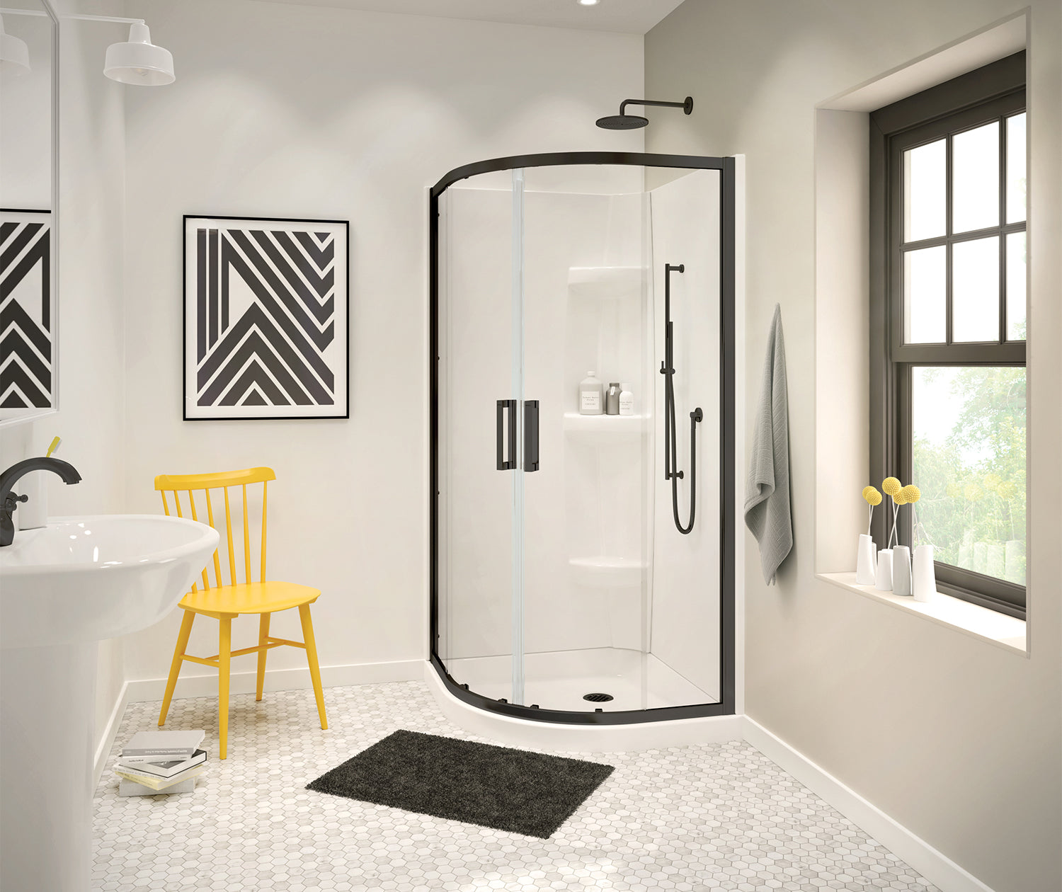 Radia Neo-round 32 x 32 x 71 ½ in. 6 mm Sliding Shower Door for Corner Installation with Clear glass in Matte Black