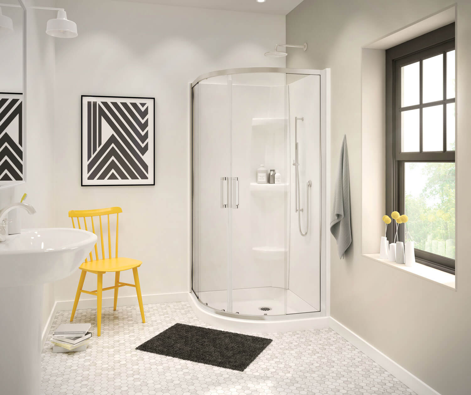 Radia Neo-round 36 x 36 x 71 ½ in. 6 mm Sliding Shower Door for Corner Installation with Clear glass in Brushed Nickel