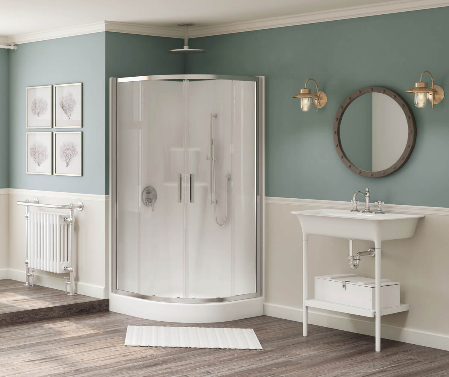 Radia Neo-round 38 x 38 x 71 ½ in. 6 mm Sliding Shower Door for Corner Installation with Clear glass in Chrome