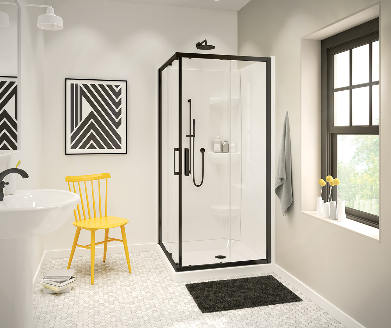 Radia Square 36 x 36 x 71 ½ in. 6 mm Sliding Shower Door for Corner Installation with Clear glass in Matte Black