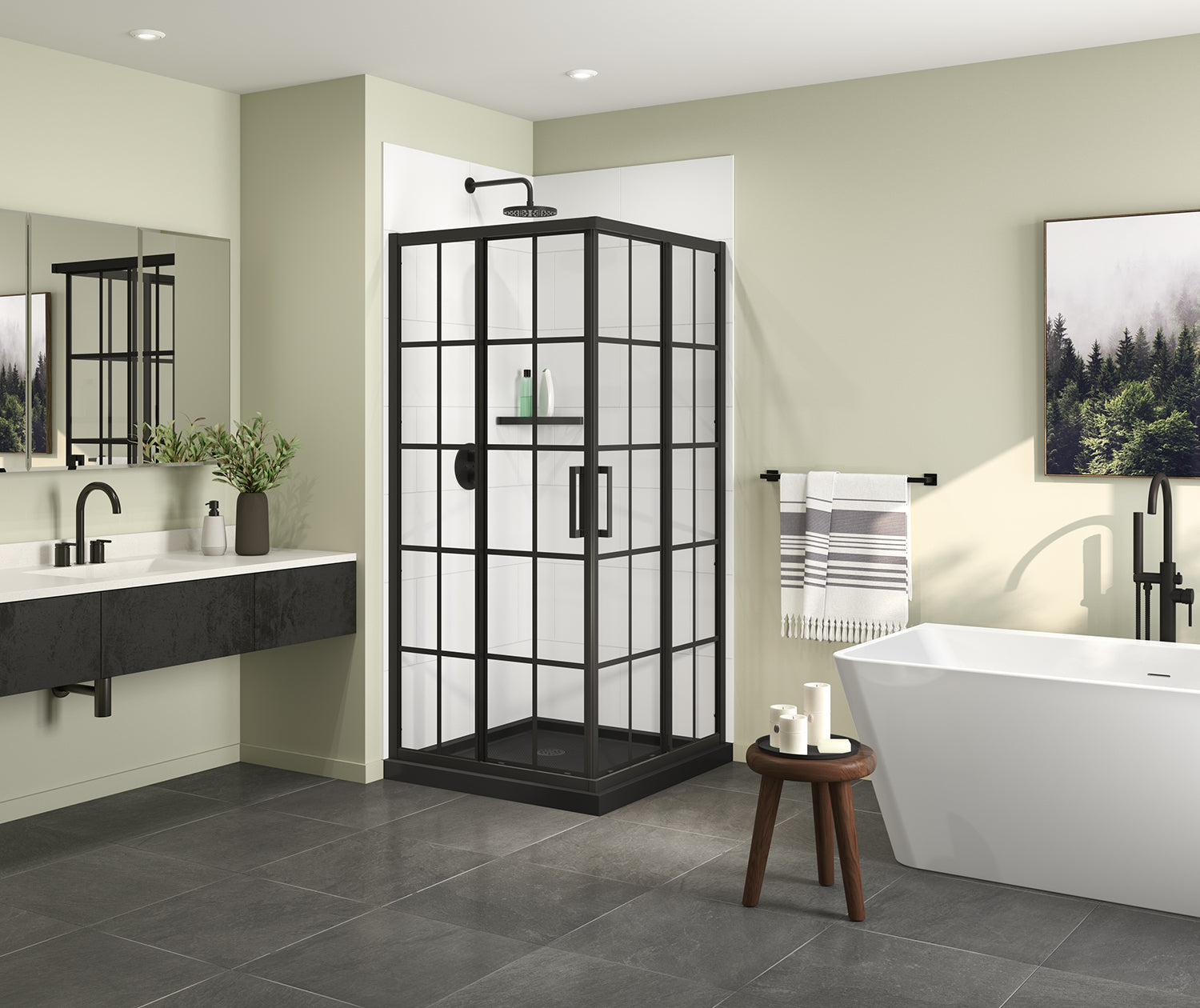 Radia Square 36 x 36 x 71 ½ in. 6 mm Sliding Shower Door for Corner Installation with French glass in Matte Black