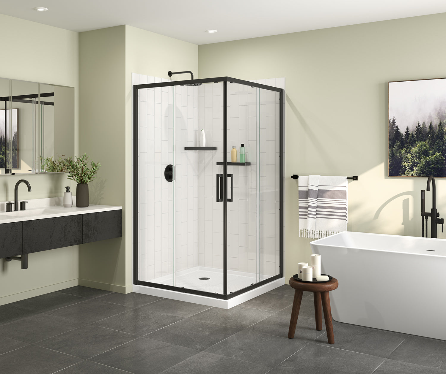 Radia Square 42 x 42 x 71 ½ in. 6 mm Sliding Shower Door for Corner Installation with Clear Glass in Matte Black
