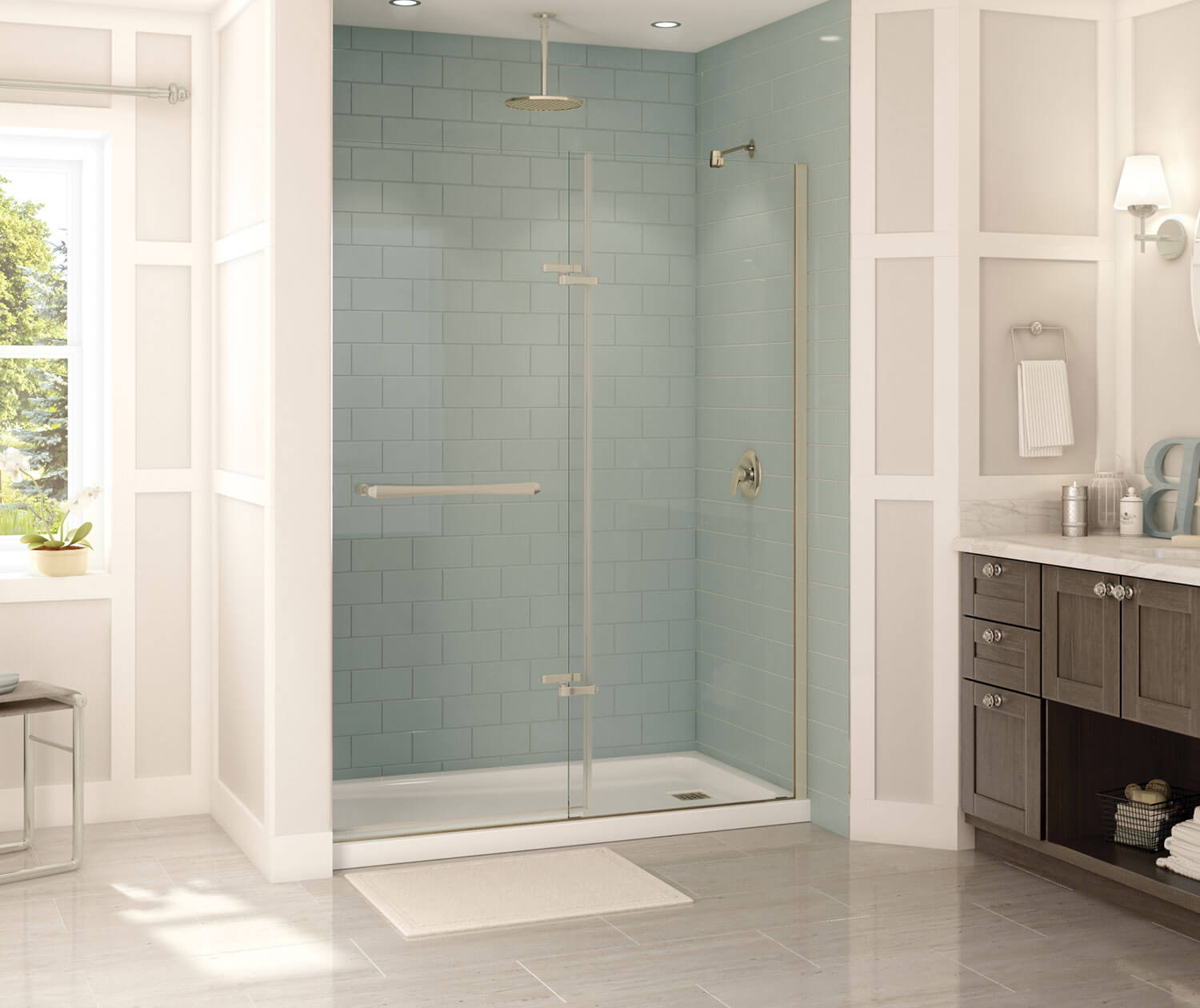 Reveal 71 56-59 x 71 ½ in. 8mm Pivot Shower Door for Alcove Installation with Clear glass in Brushed Nickel