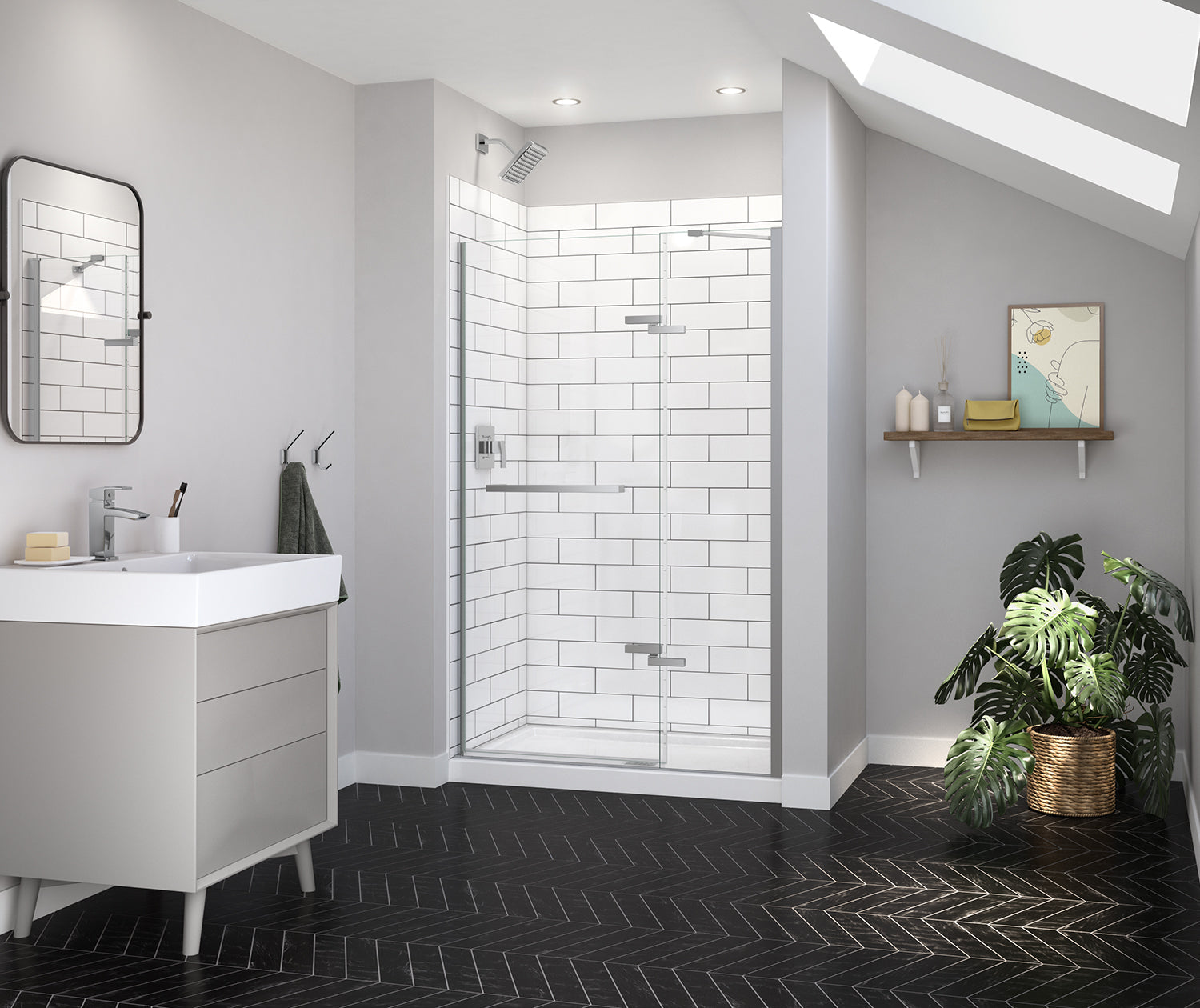 Reveal Sleek 71 44-47 x 71 1/2 in. 8mm Pivot Shower Door for Alcove Installation with Clear glass in Chrome
