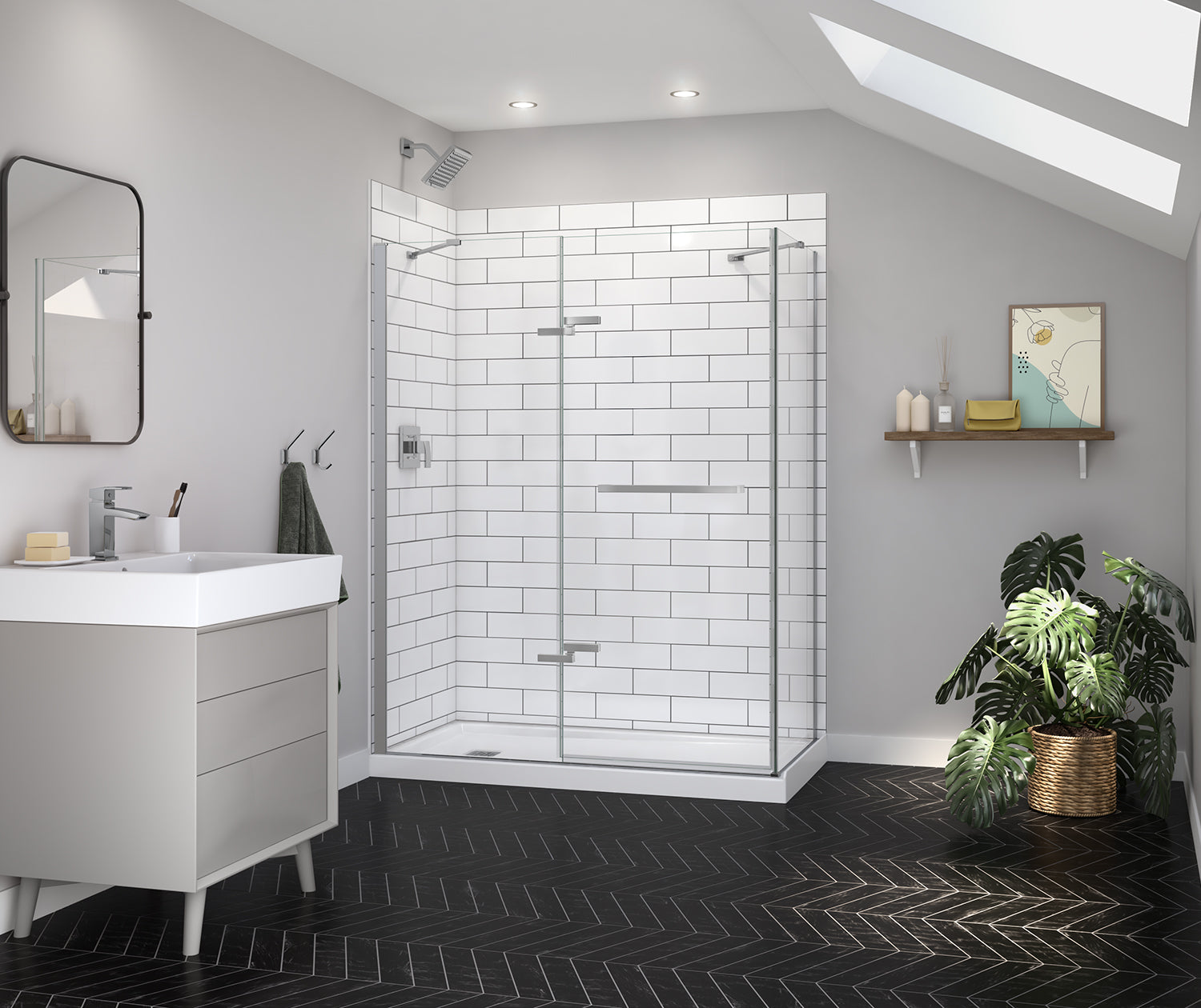 Reveal Sleek 71 Return Panel for 34 in. Base with Clear glass in Chrome
