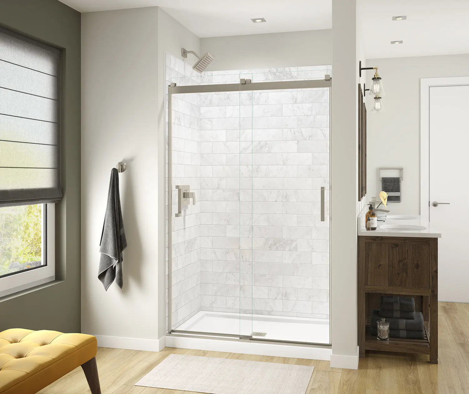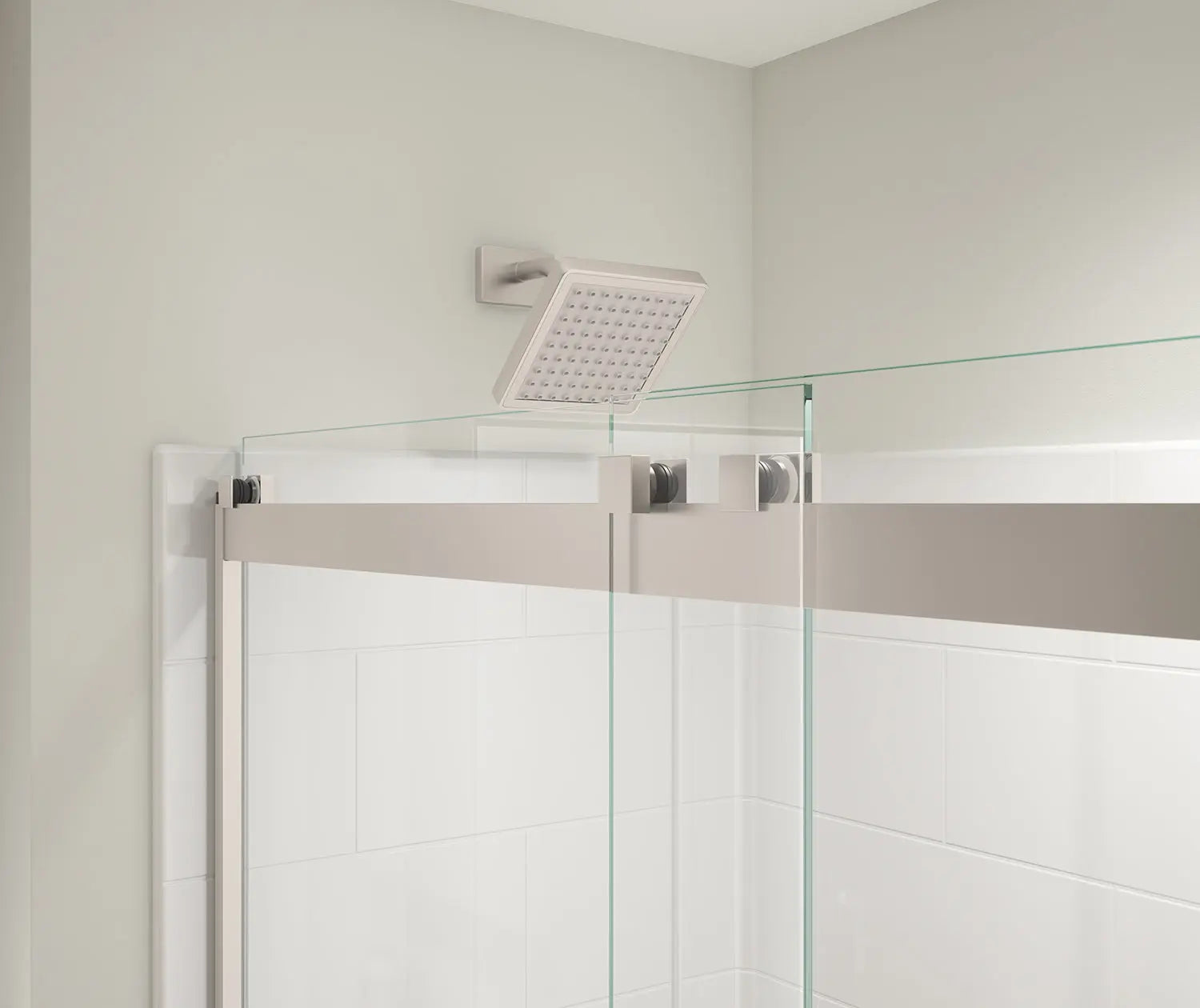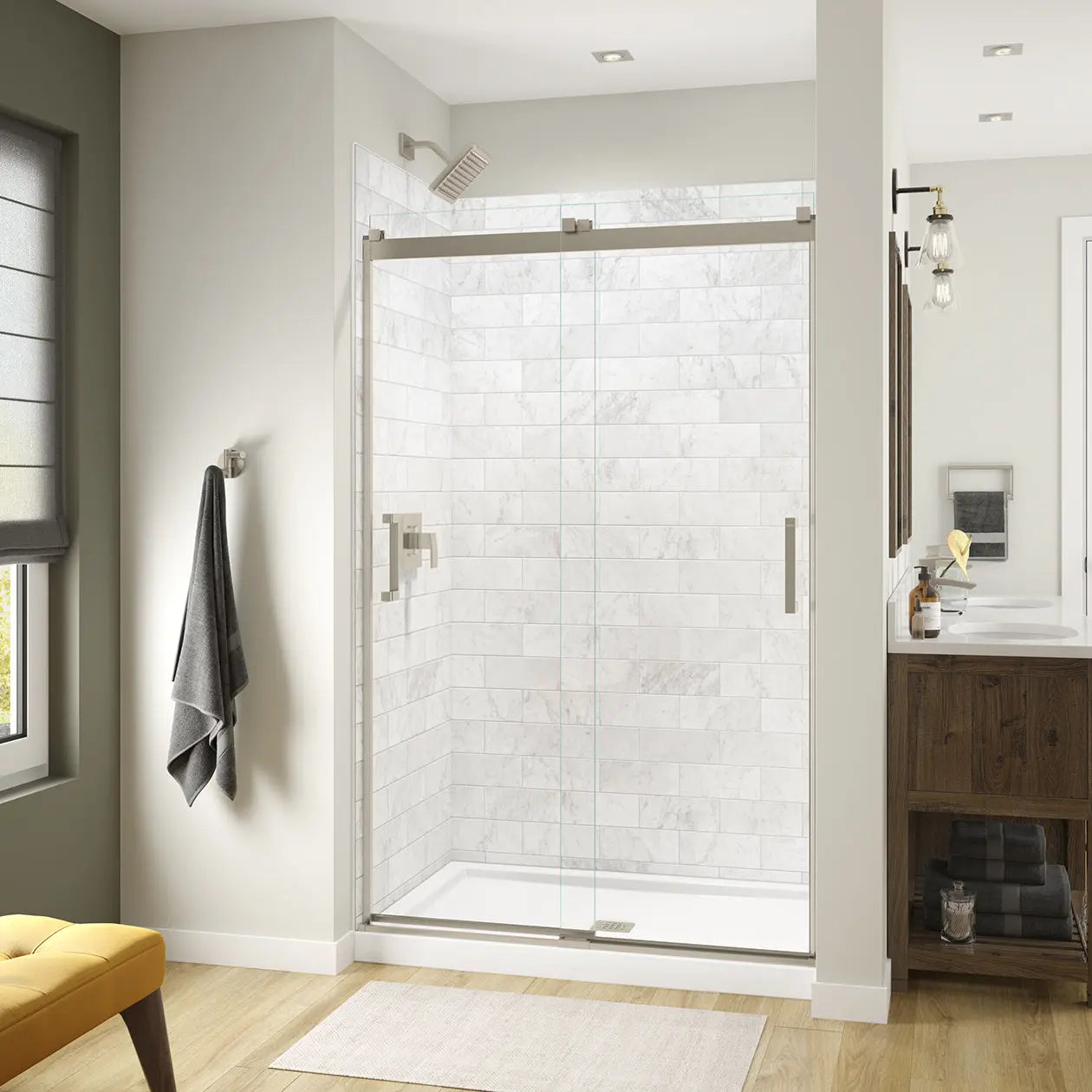 Revelation Square 44-47 x 70 ½-73 in. 6 mm Bypass Shower Door for Alcove Installation with Clear glass in Brushed Nickel