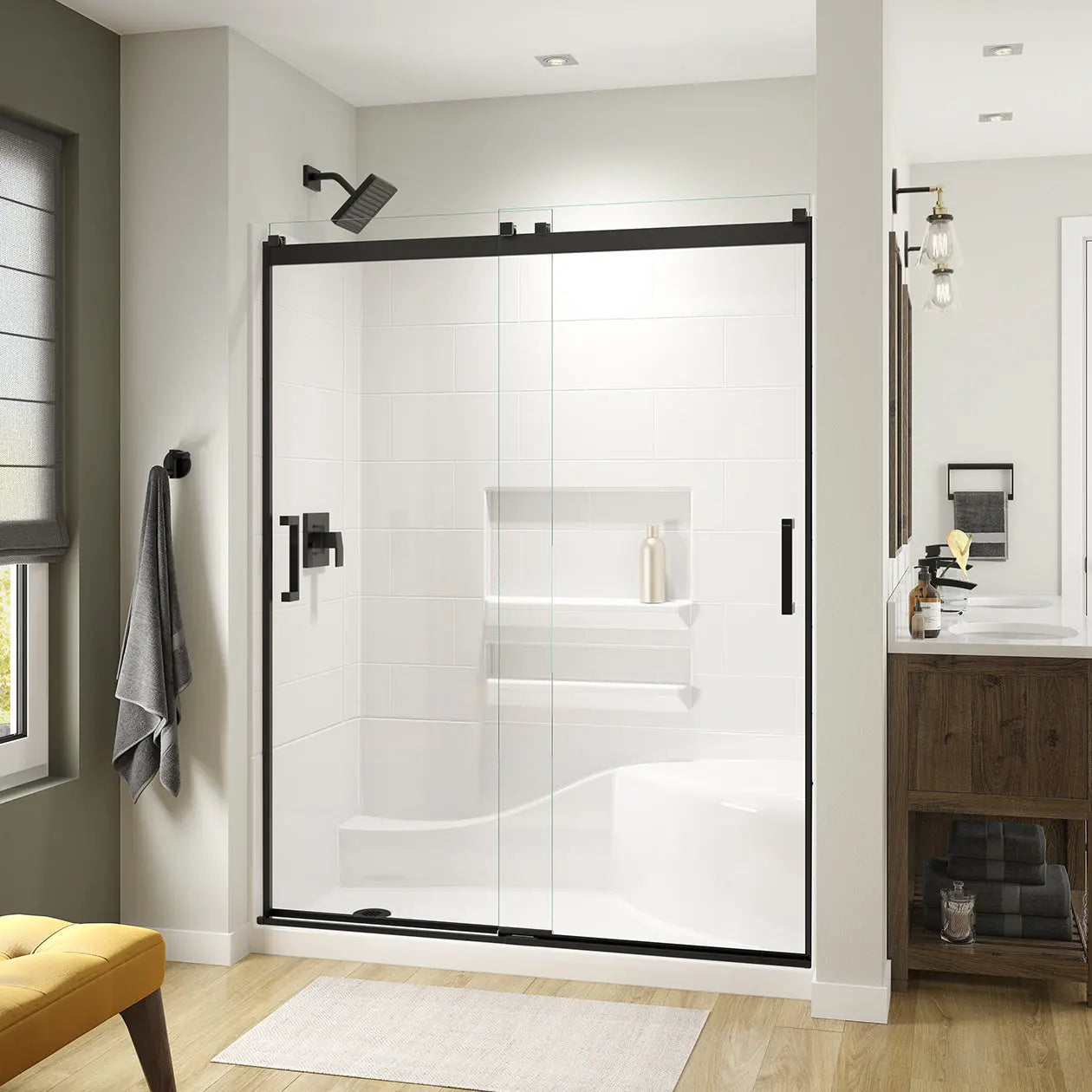 Revelation Square 56-59 x 70 ½-73 in. 6 mm Bypass Shower Door for Alcove Installation with Clear glass in Matte Black