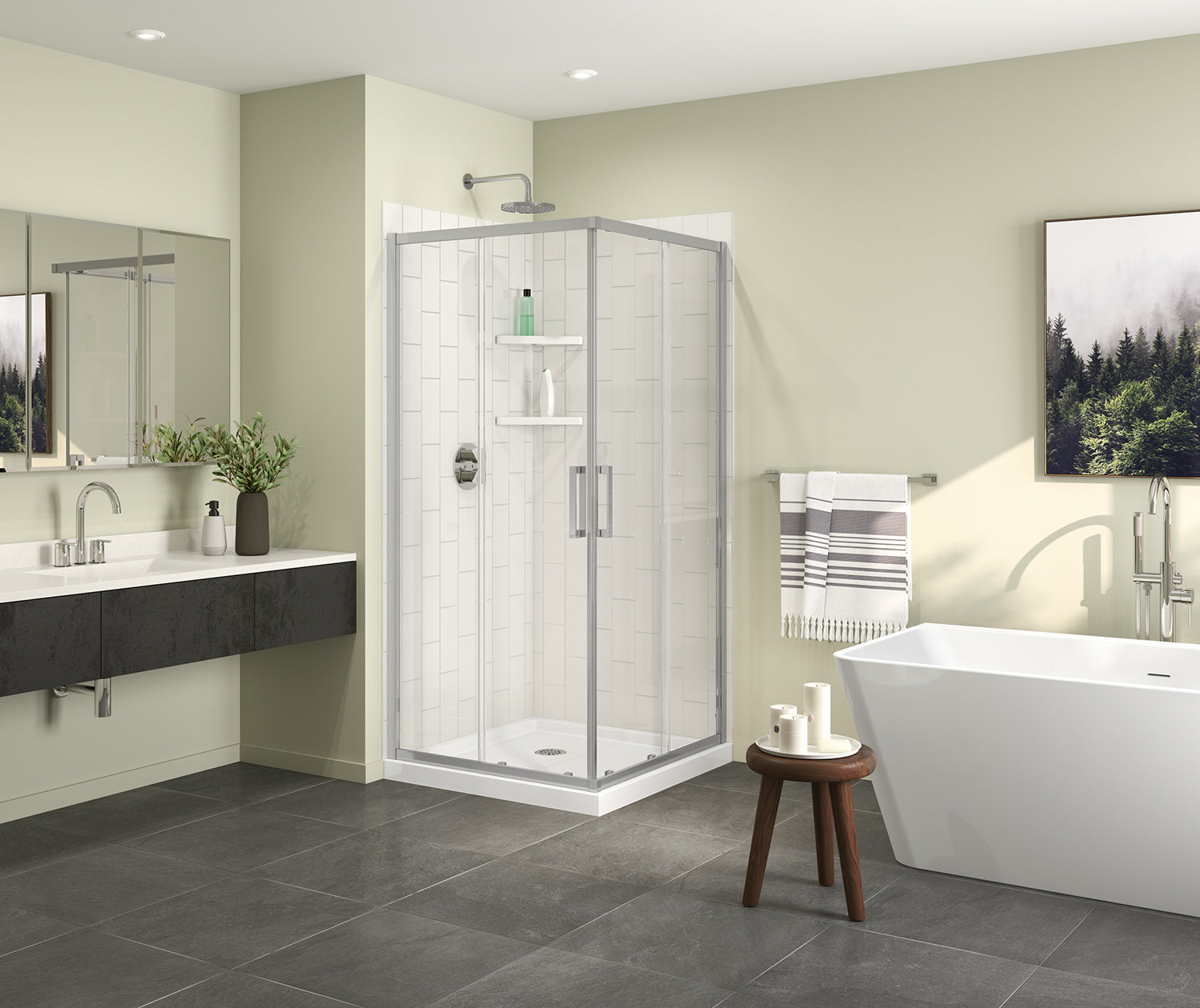 Roka 3636 Acrylic Corner Shower Base with Corner Drain in White