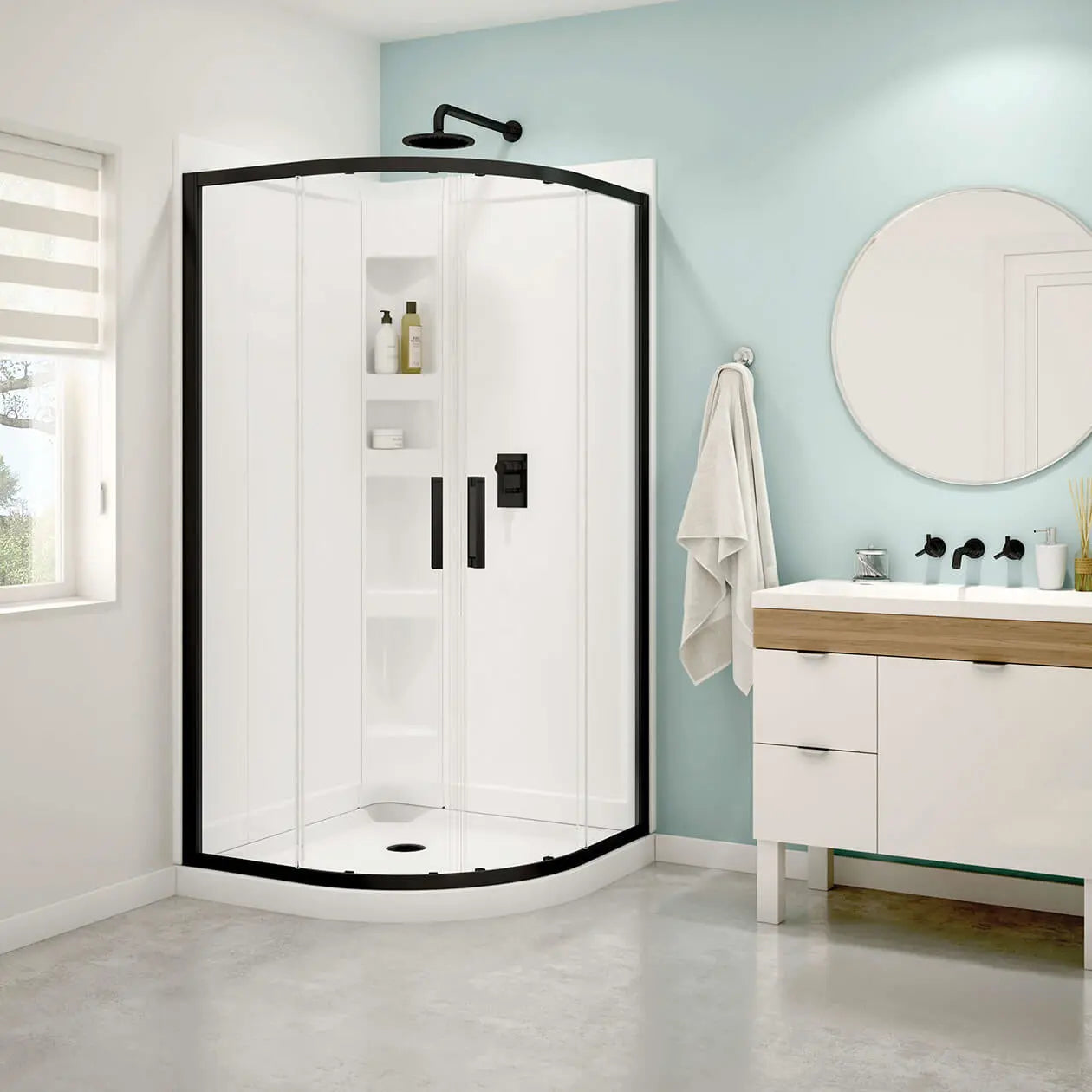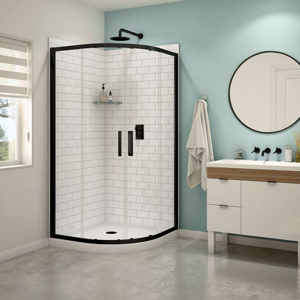 Maax Sakura Acrylic Shower Kit in White with Clear glass in Matte Black 106540-900-340-000