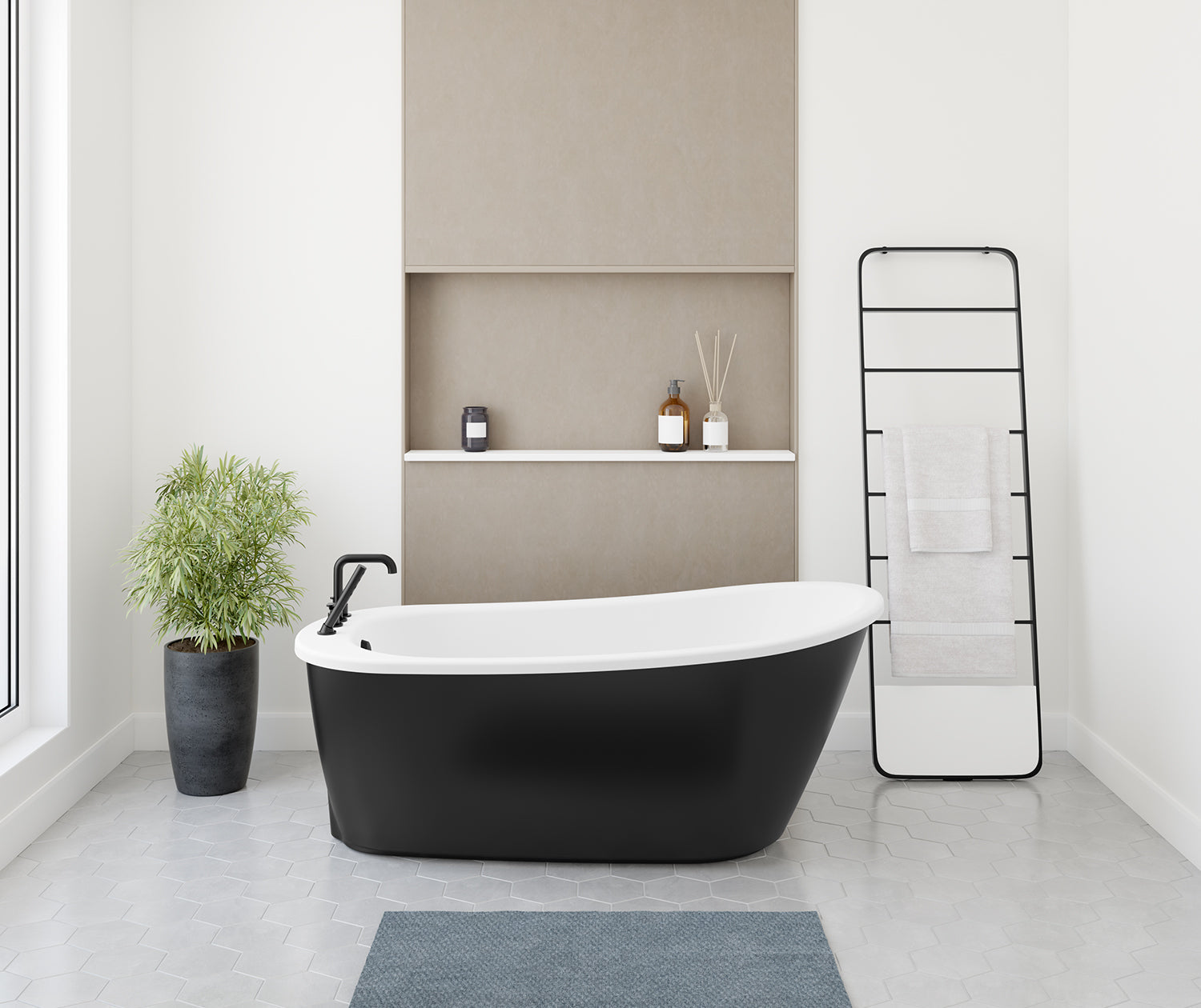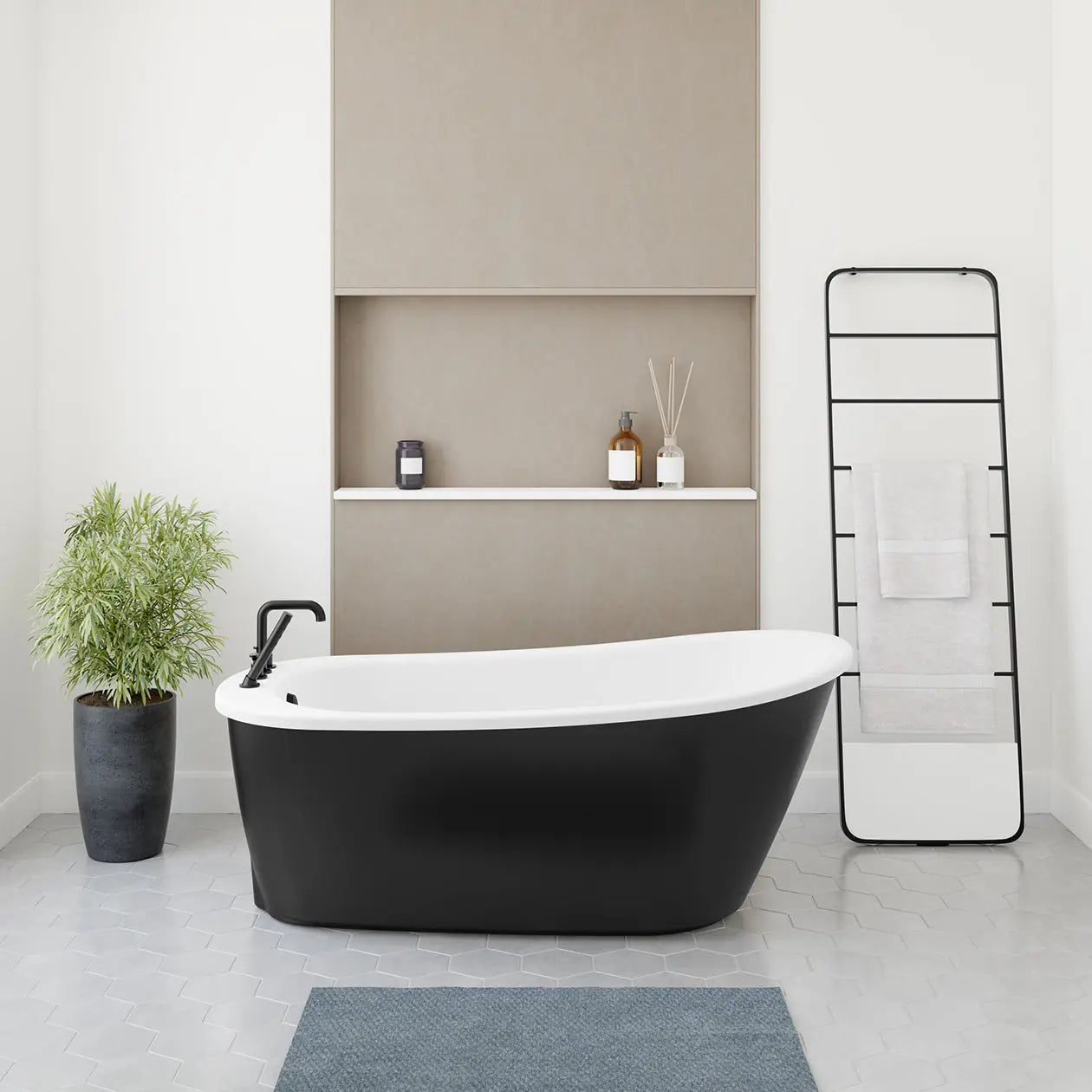 Sax 6032 AcrylX Freestanding End Drain Bathtub in White with Black Skirt