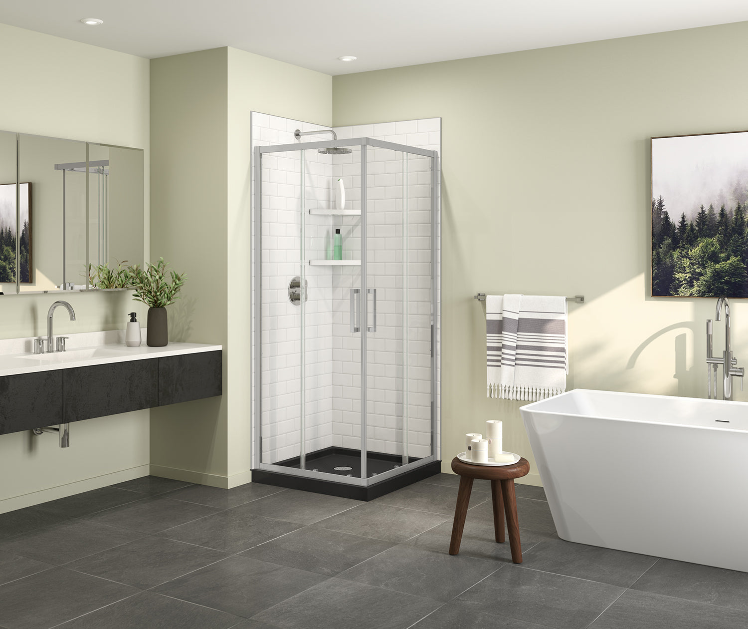 Maax Scarlet 32 x 32 Acrylic Corner Drain Shower Kit in Black with Clear Glass in Chrome 107485-900-084-000