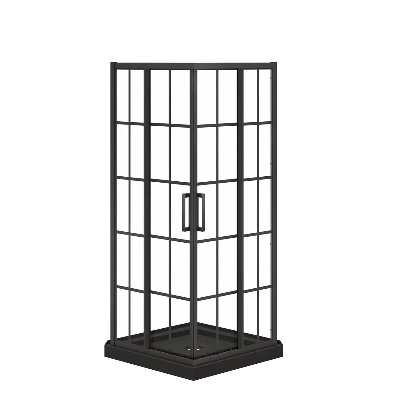 Maax Scarlet 32 x 32 Acrylic Corner Drain Shower Kit in Black with French Glass in Matte Black 107485-977-340-000