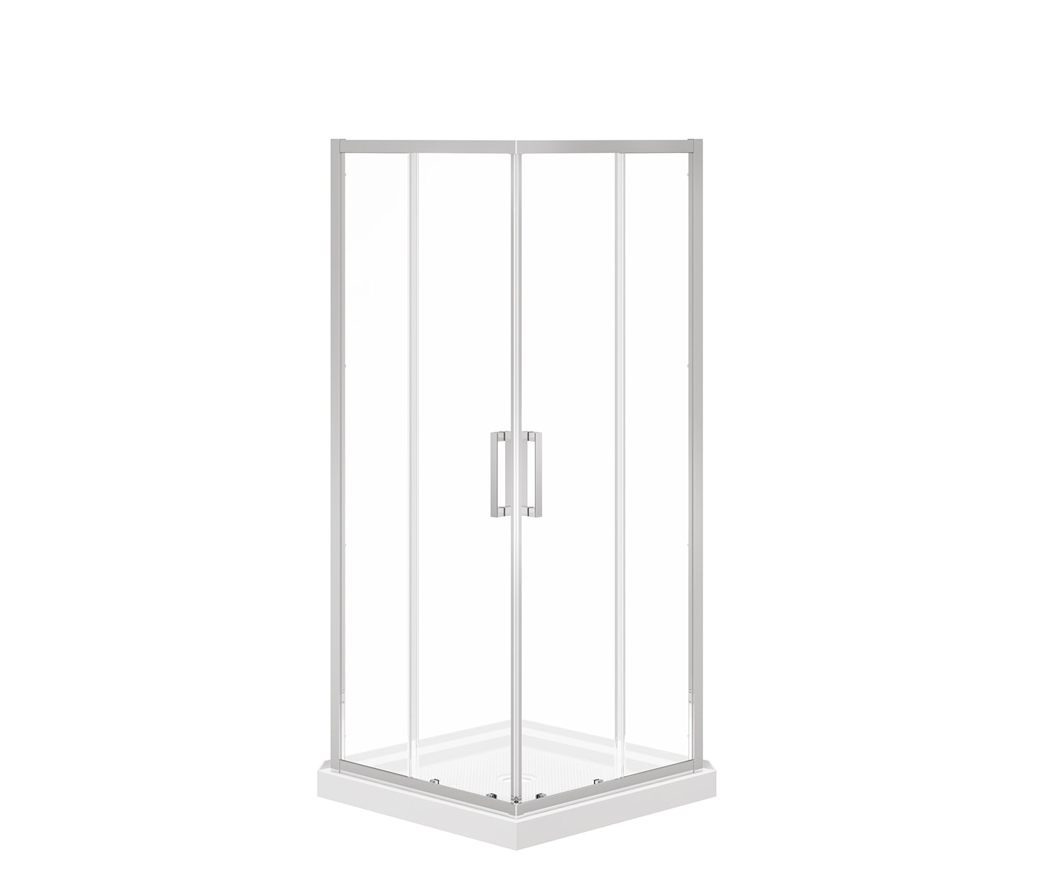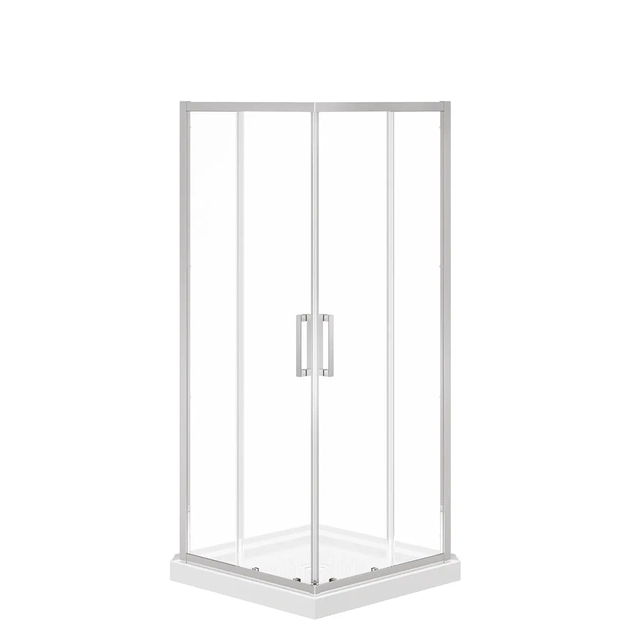 Maax Scarlet 32 x 32 Acrylic Corner Drain Shower Kit in White with Clear Glass in Chrome 107484-900-084-000