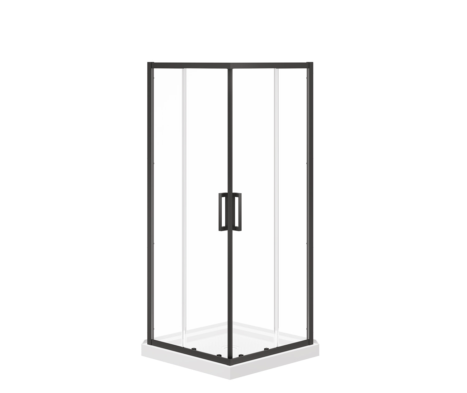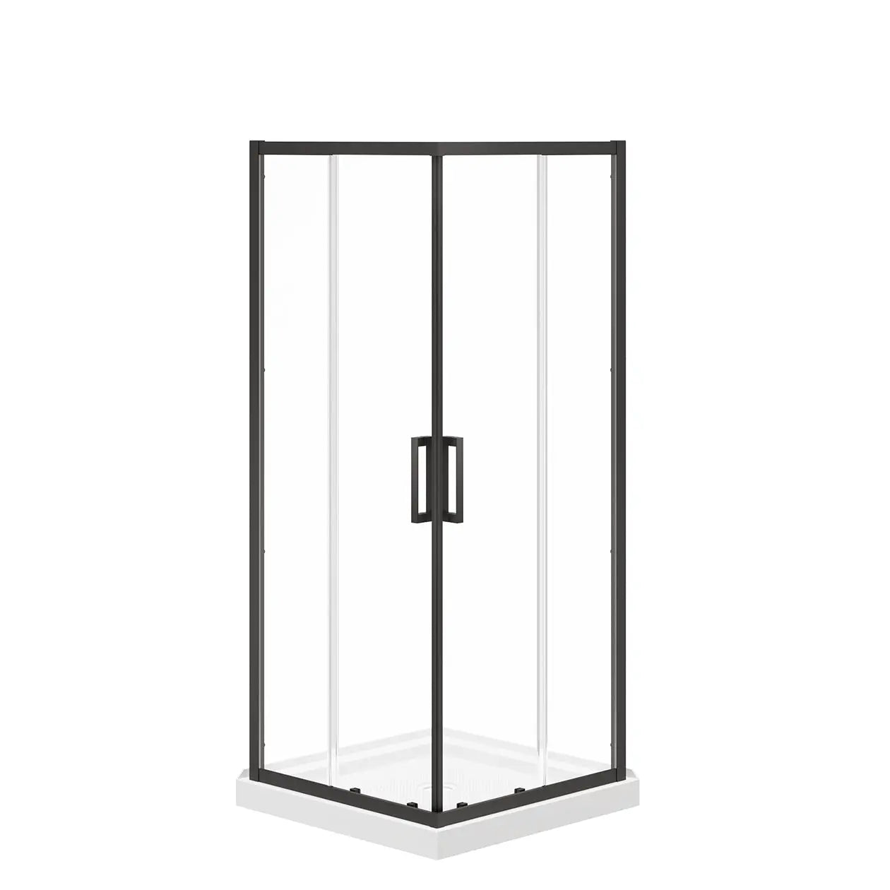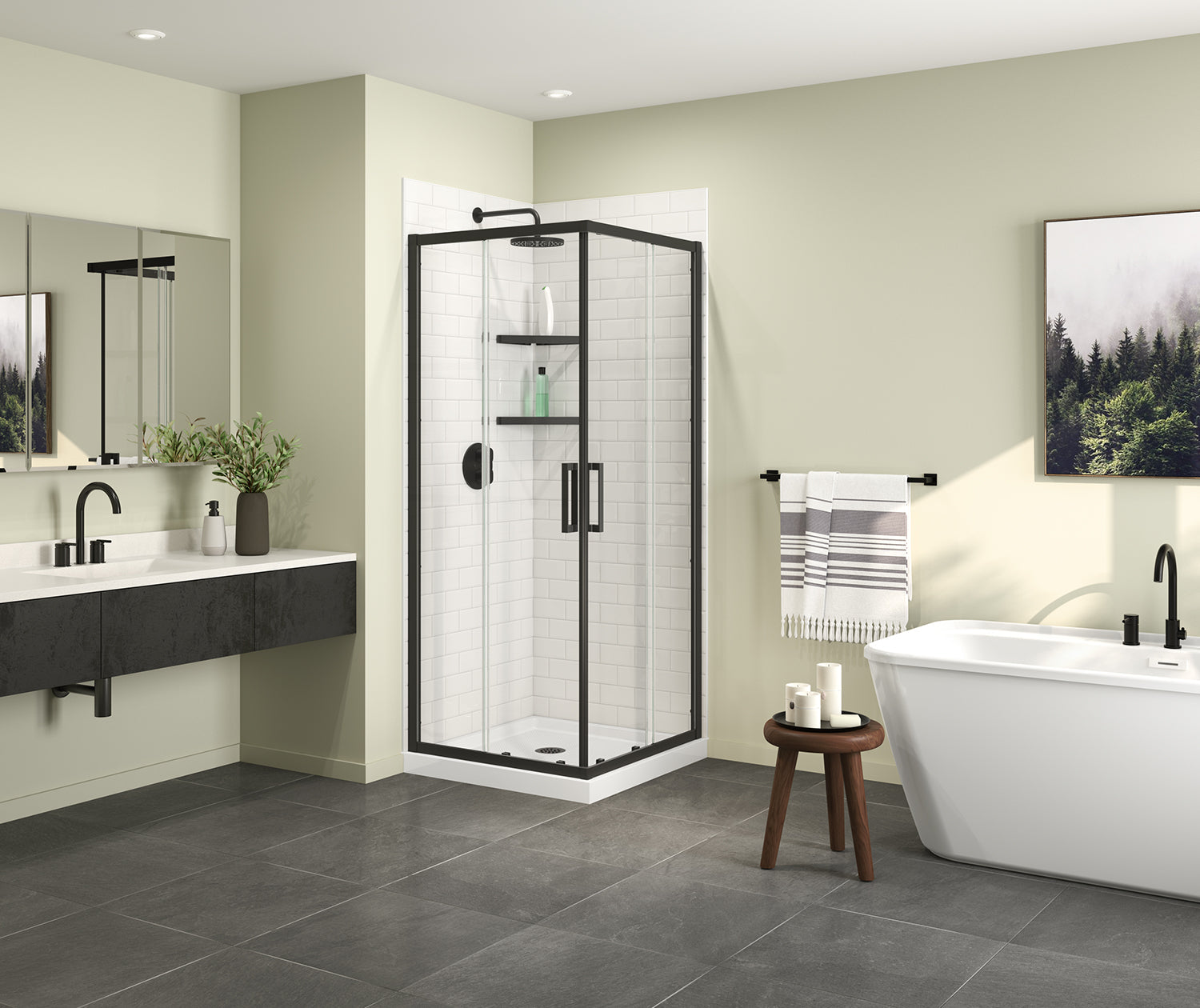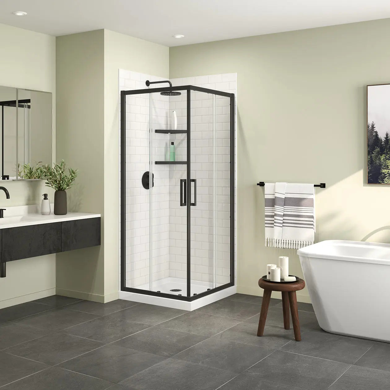 Maax Scarlet 32 x 32 Acrylic Corner Drain Shower Kit in White with Clear Glass in Matte Black 107484-900-340-000