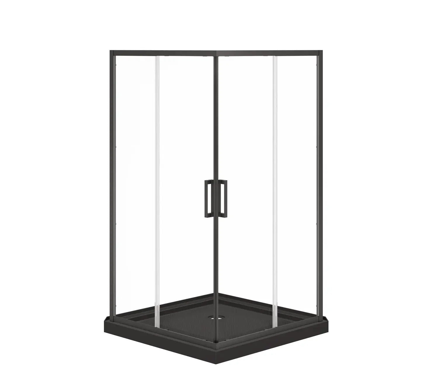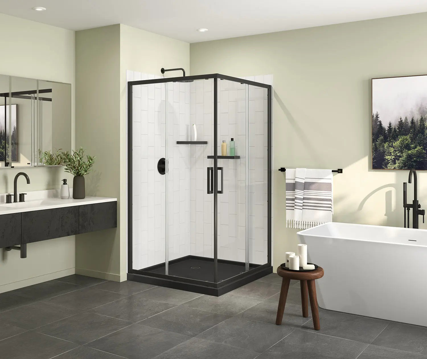 Maax Scarlet 42 x 42 Acrylic Corner Drain Shower Kit in Black with Clear Glass in Matte Black 107487-900-340-000