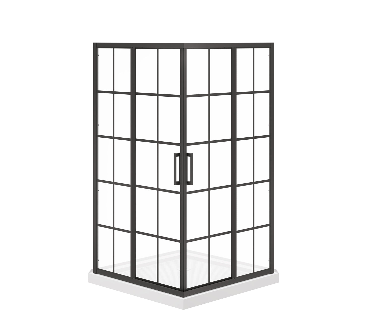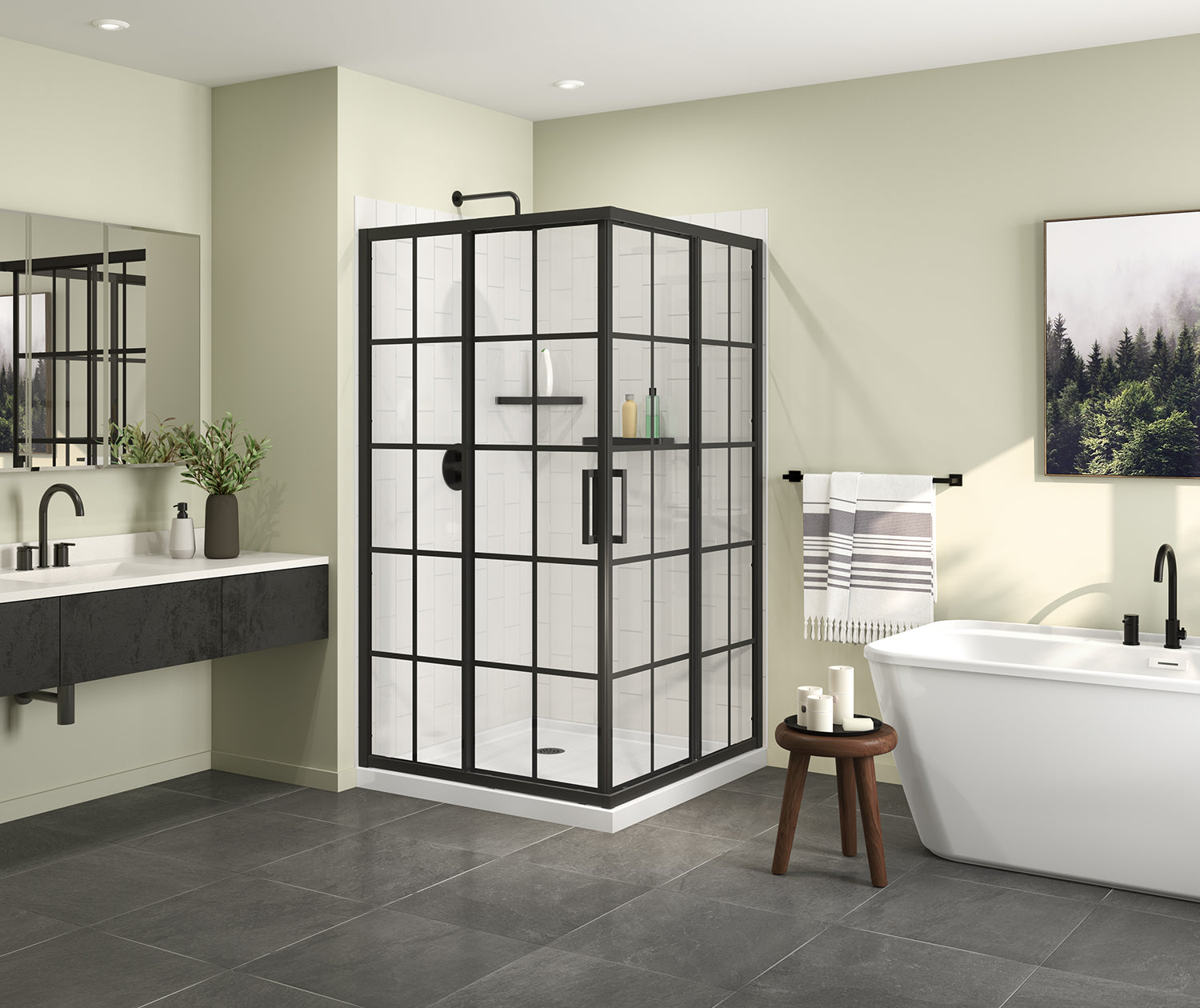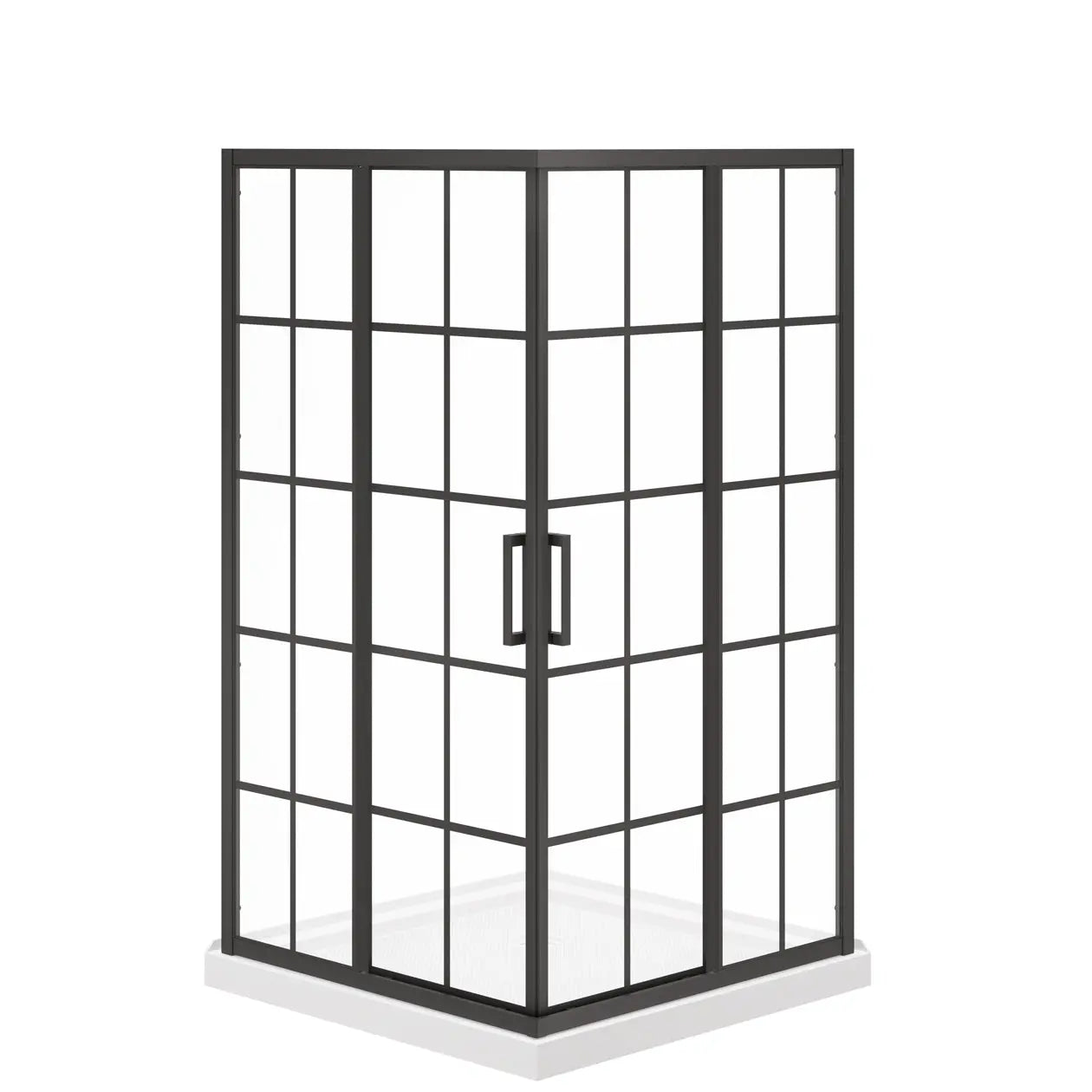 Maax Scarlet 42 x 42 Acrylic Corner Drain Shower Kit in White with French Glass in Matte Black 107486-977-340-000