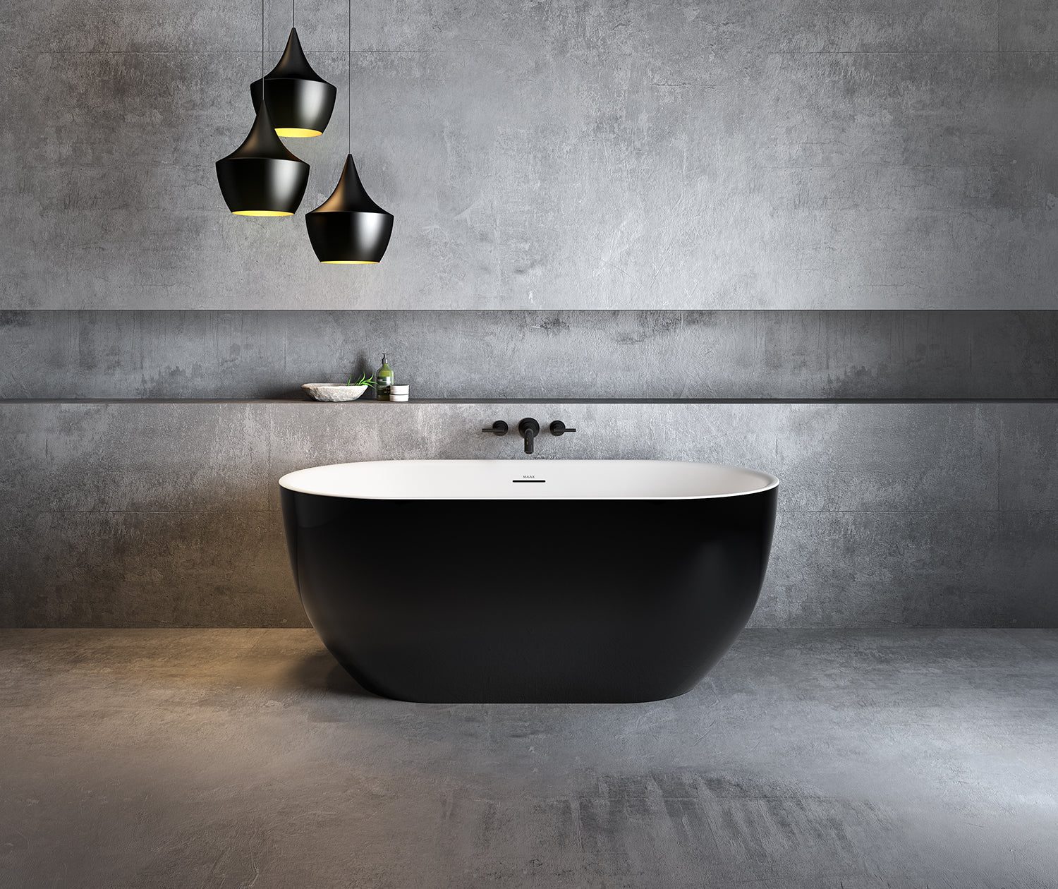 Tosca 5932 Acrylic Freestanding Center Drain Bathtub in White with Black Skirt
