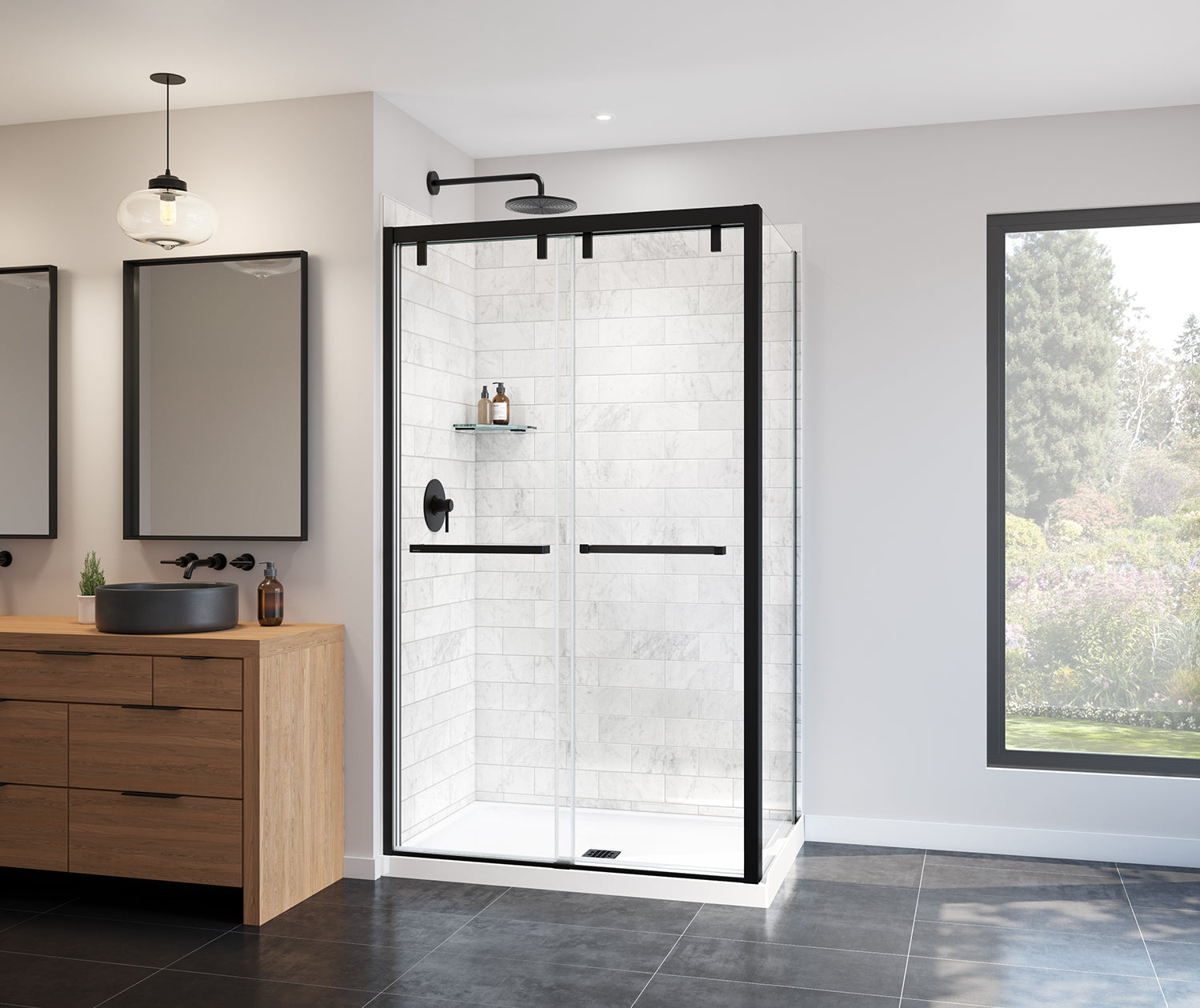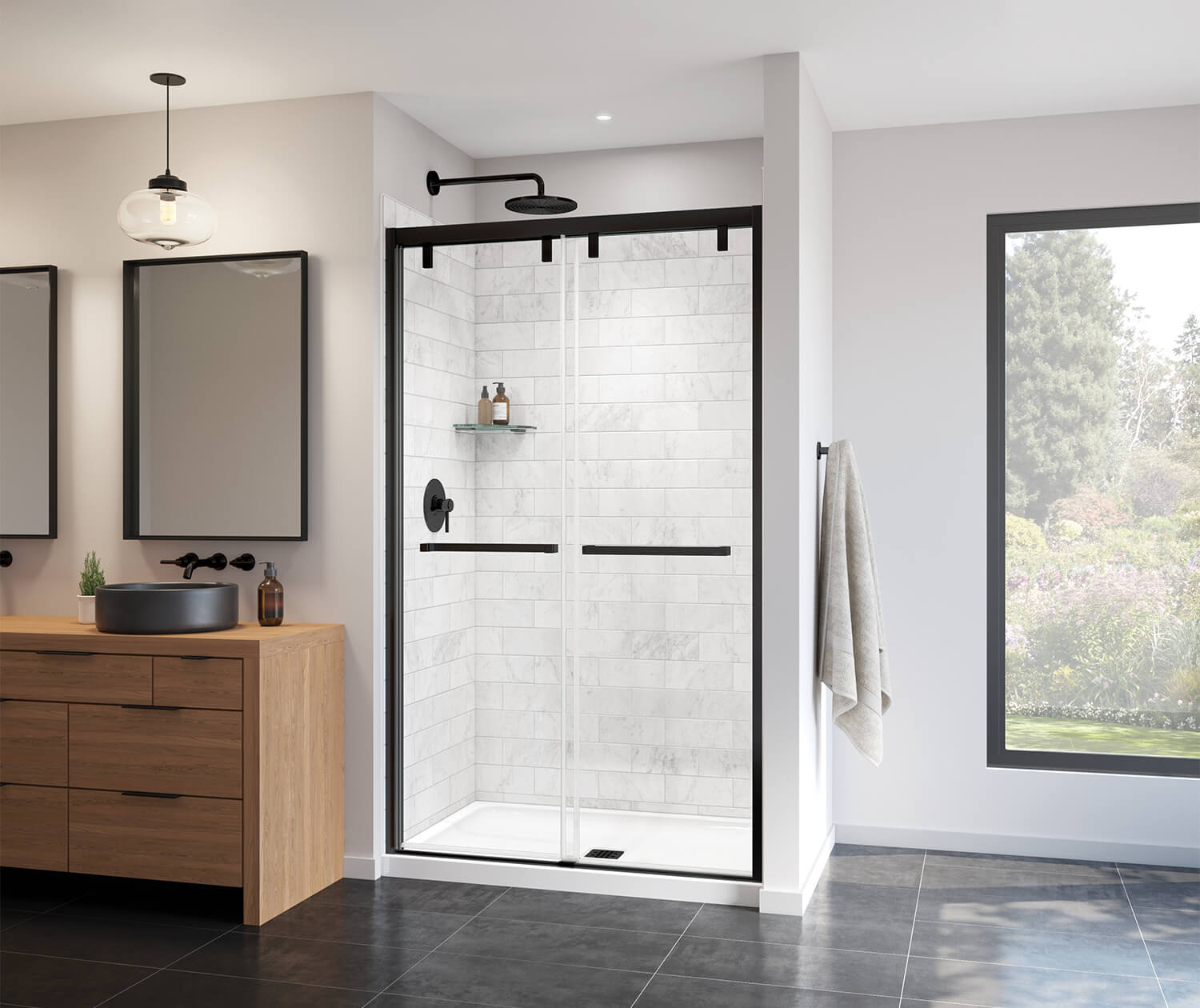Uptown 44-47 x 76 in. 8 mm Bypass Shower Door for Alcove Installation with Clear glass in Matte Black