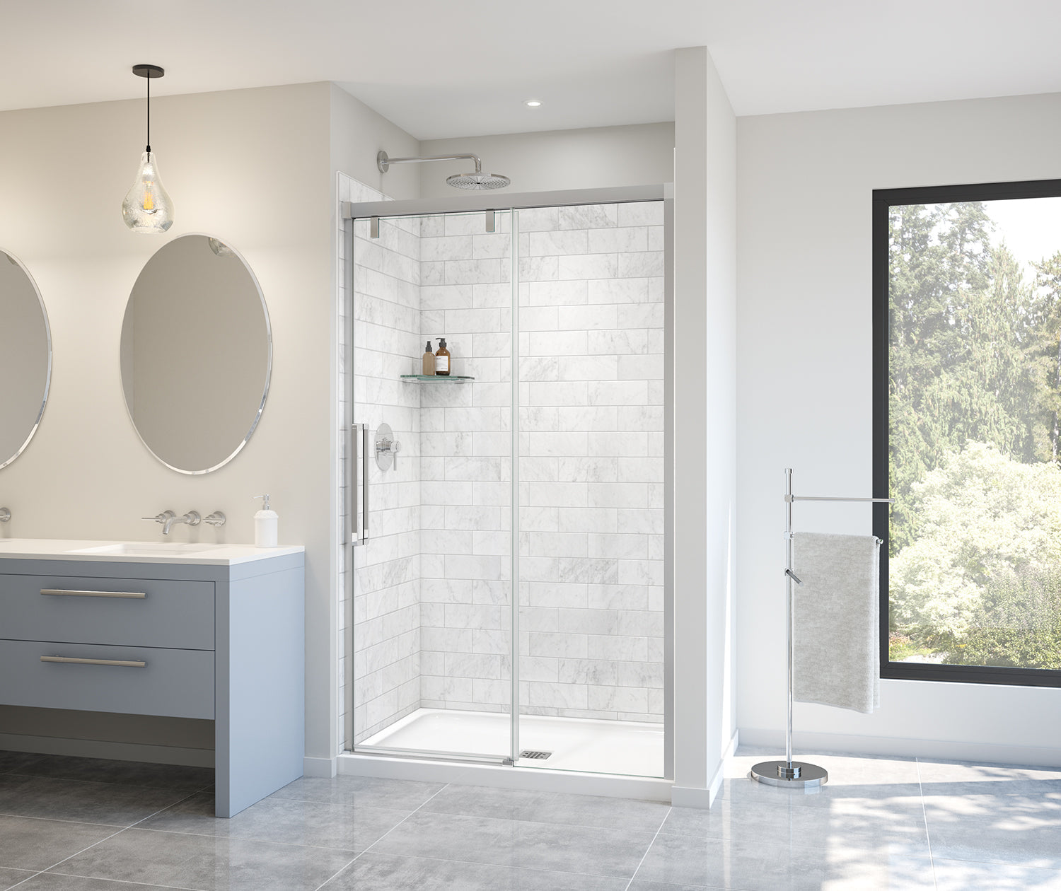 Uptown 44-47 x 76 in. 8 mm Sliding Shower Door for Alcove Installation with Clear glass in Chrome