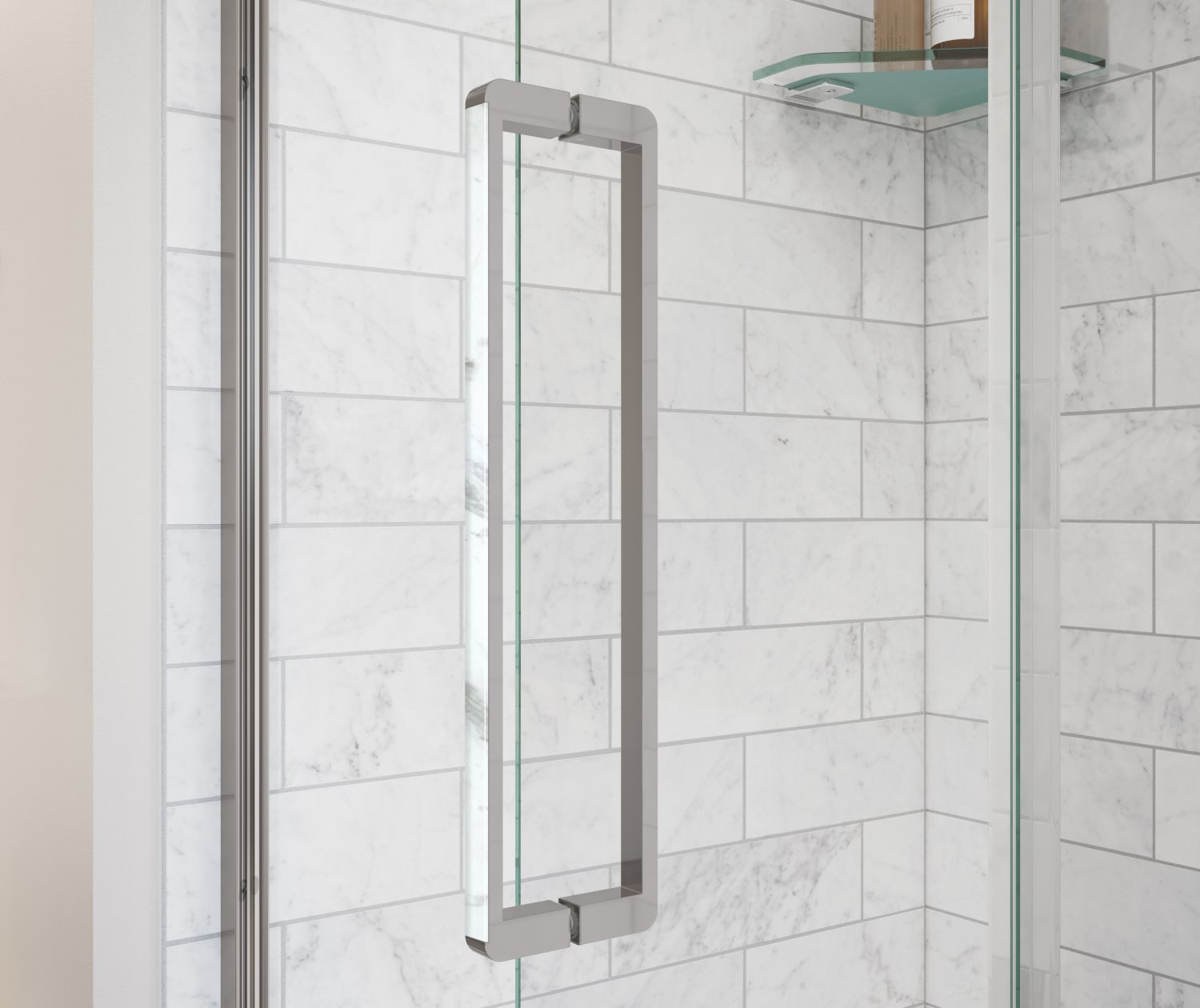 Uptown 45-47 x 76 in. 8 mm Pivot Shower Door for Alcove Installation with Clear glass in Chrome & White Marble
