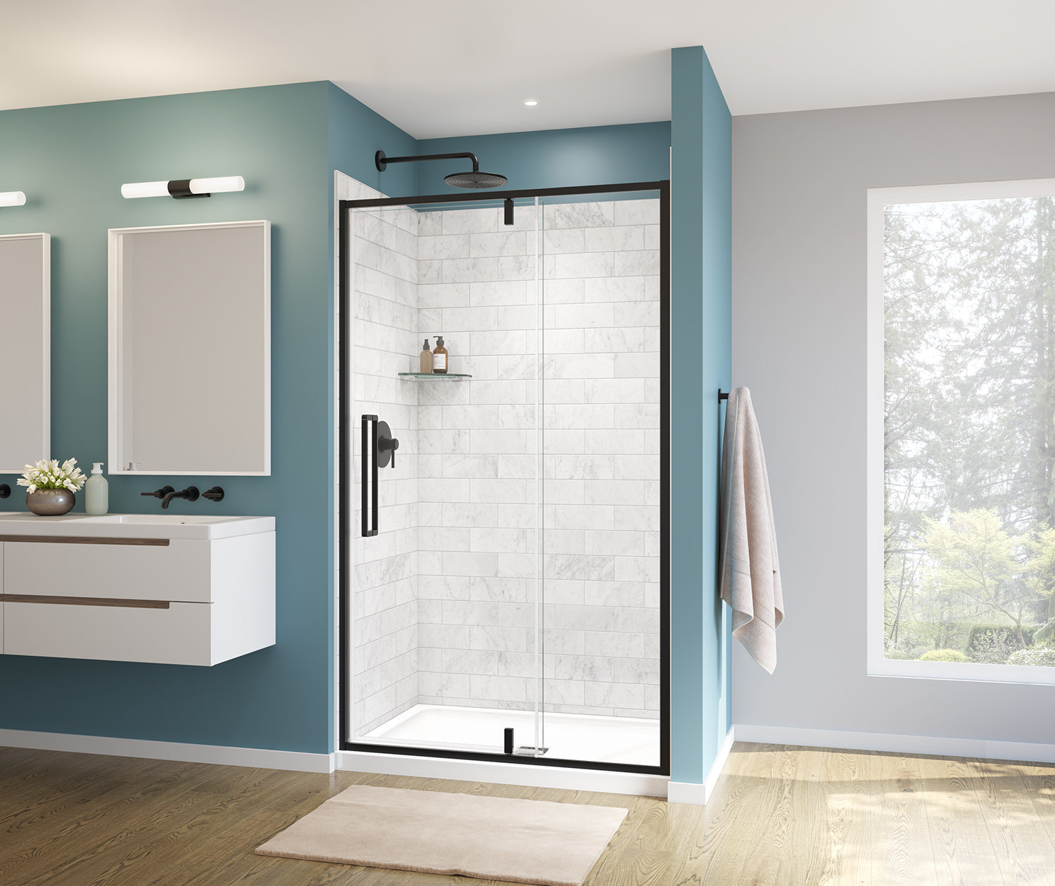 Uptown 45-47 x 76 in. 8 mm Pivot Shower Door for Alcove Installation with Clear glass in Matte Black