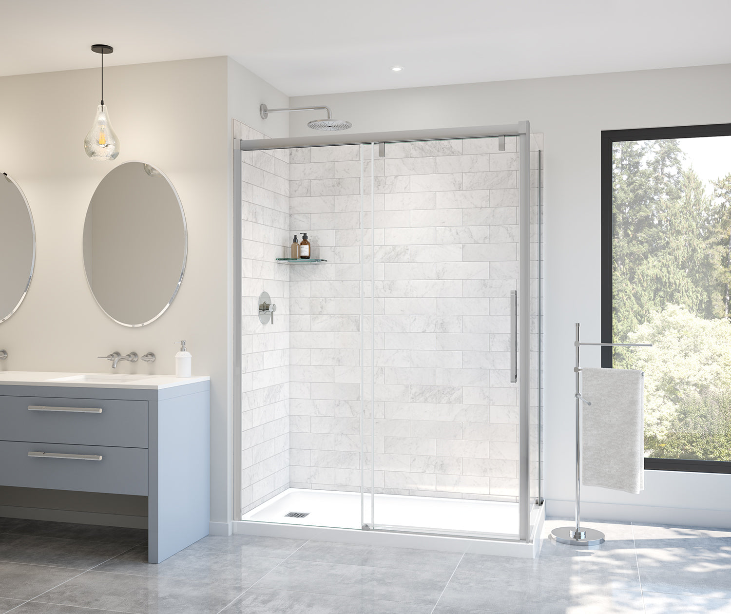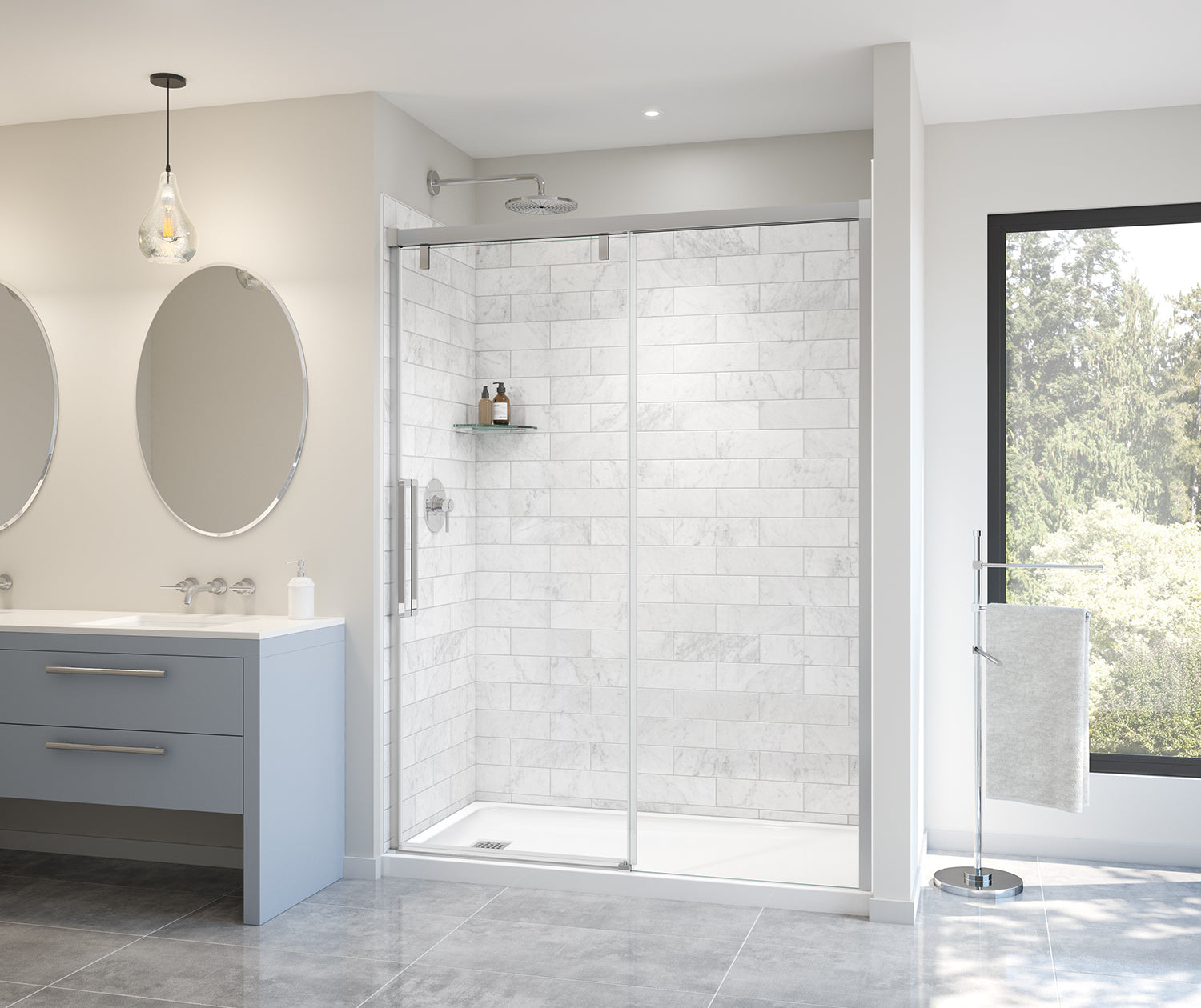 Uptown 56-59 x 76 in. 8 mm Sliding Shower Door for Alcove Installation with Clear glass in Chrome