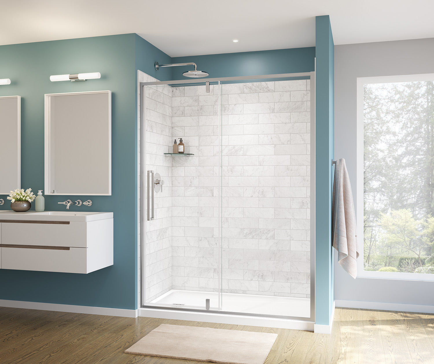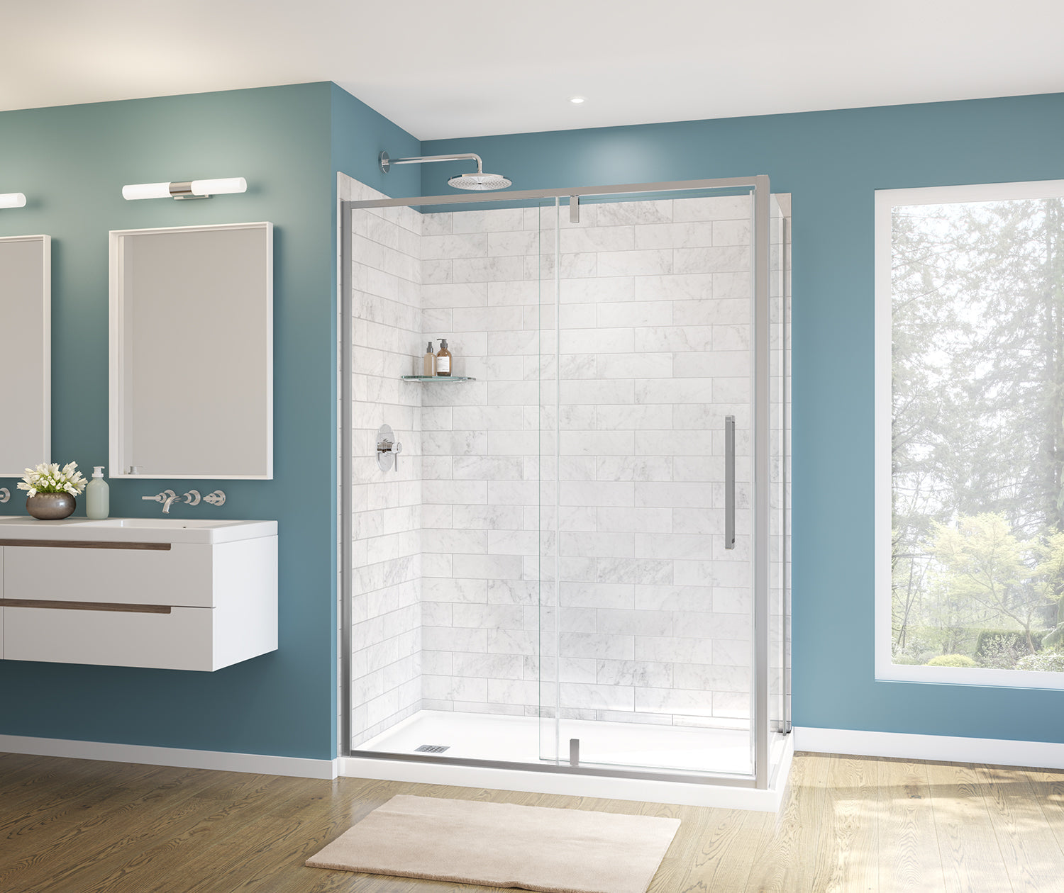 Uptown 57-59 x 76 in. 8 mm Pivot Shower Door for Alcove Installation with Clear glass in Chrome