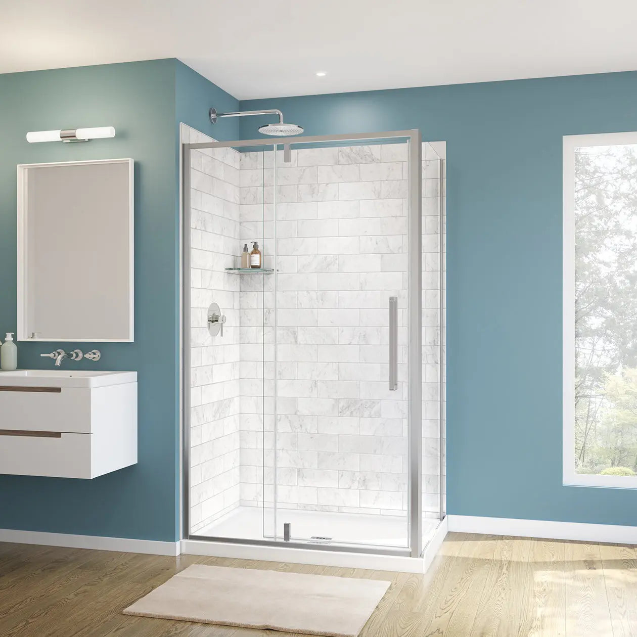 Maax Uptown Return Panel for 32 in. Base with Clear glass in Chrome 135327-900-084-000