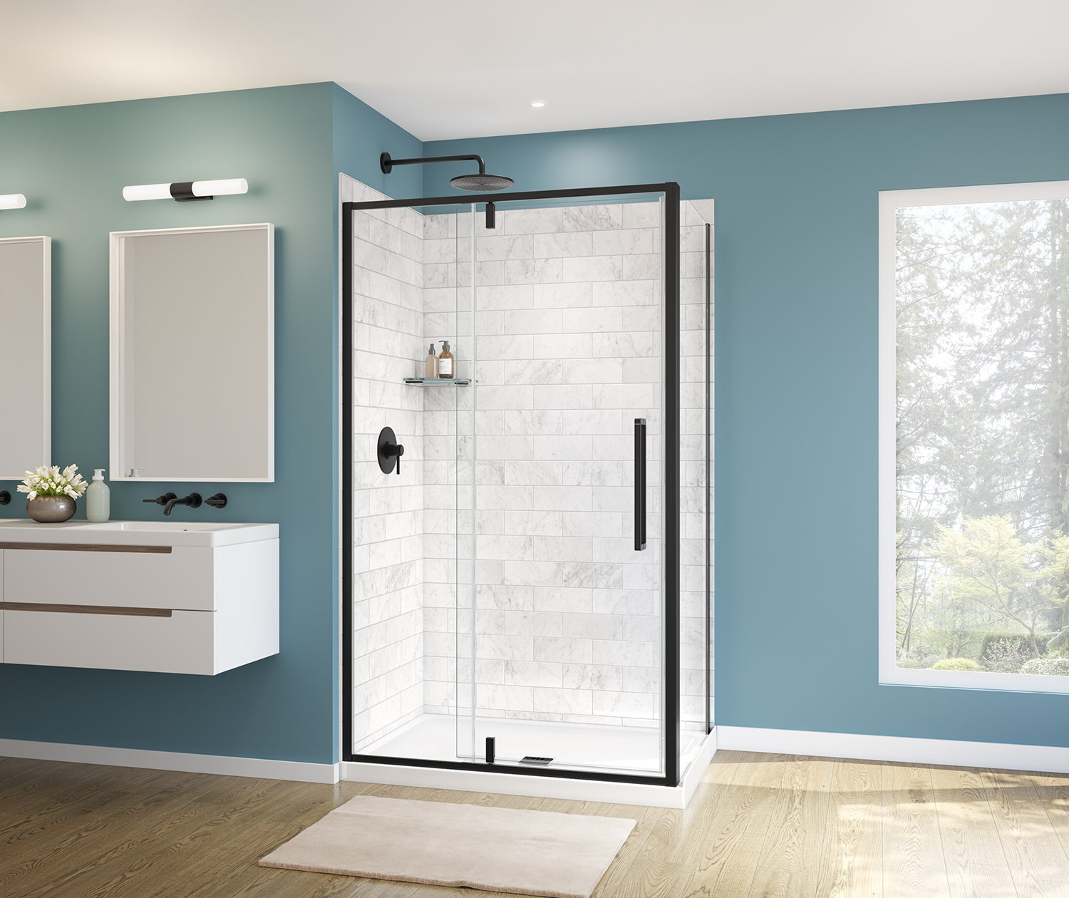 Maax Uptown Return Panel for 32 in. Base with Clear glass in Matte Black 135327-900-340-000