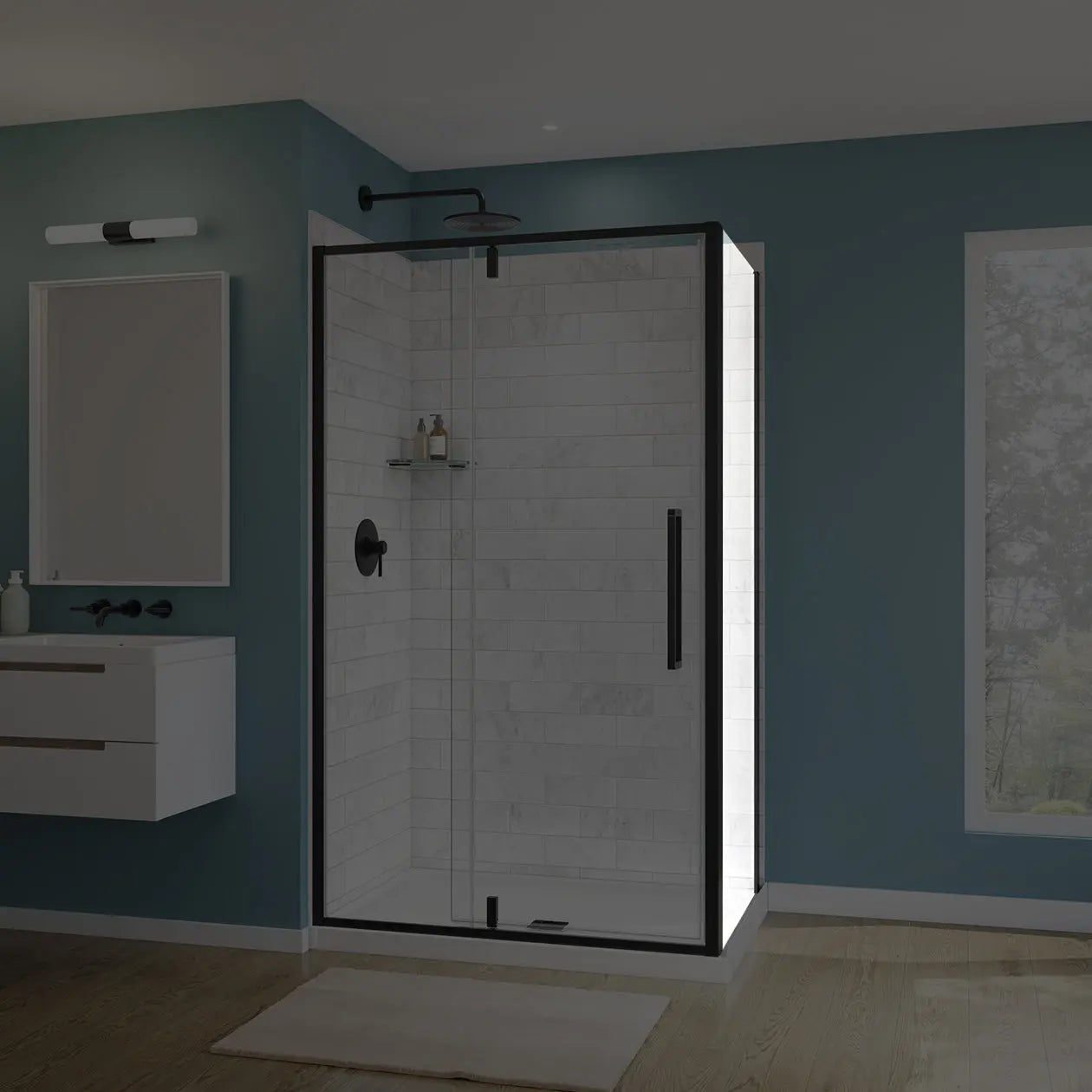 Maax Uptown Return Panel for 36 in. Base with Clear glass in Matte Black 135328-900-340-000