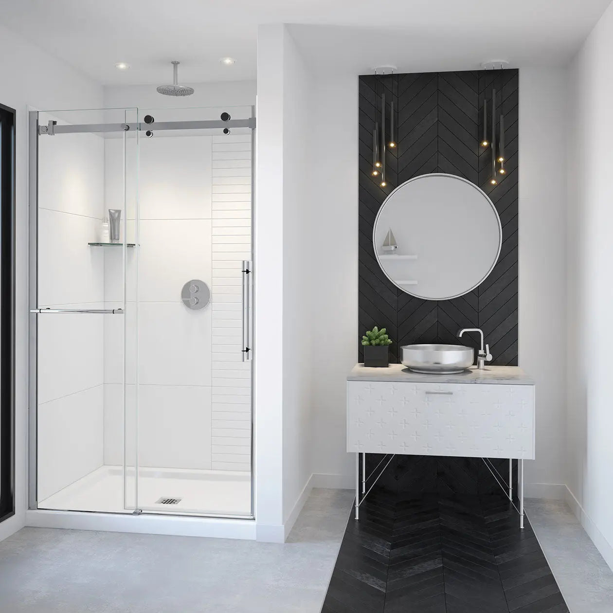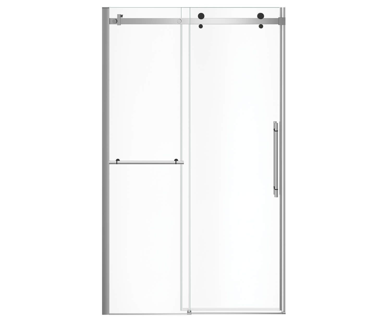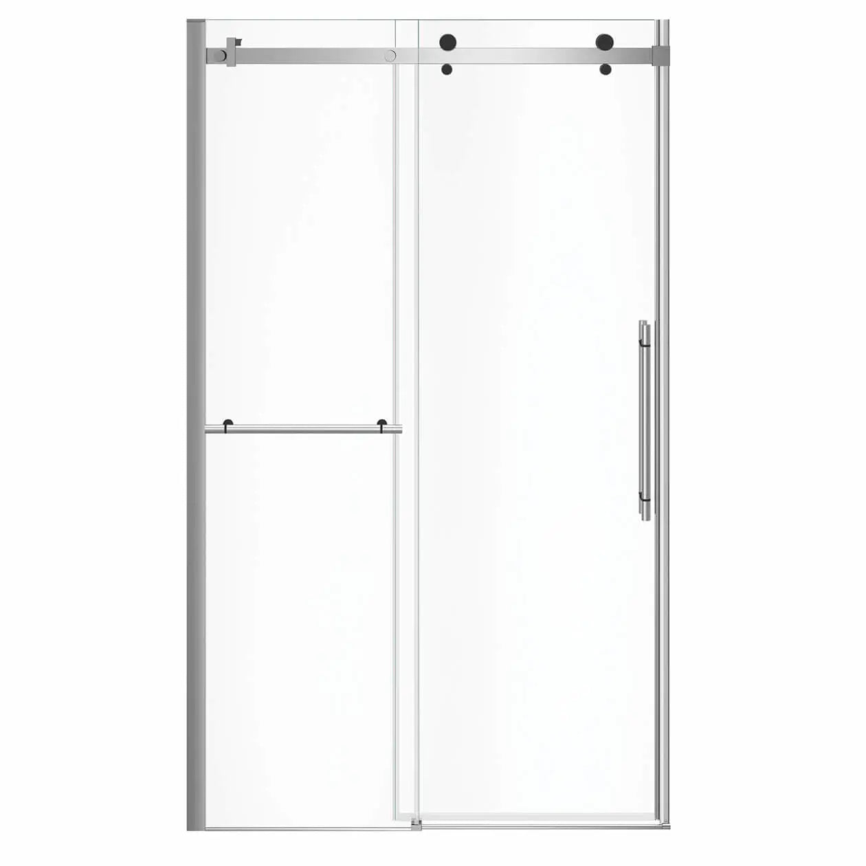 Vela 44 ½-47 x 78 ¾ in. 8mm Sliding Shower Door with Towel Bar for Alcove Installation with Clear glass in Chrome and Matte Black