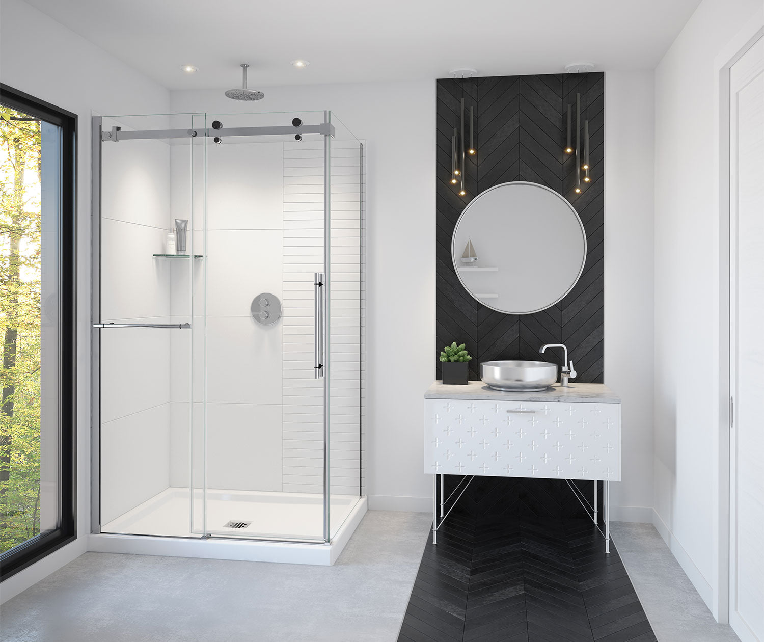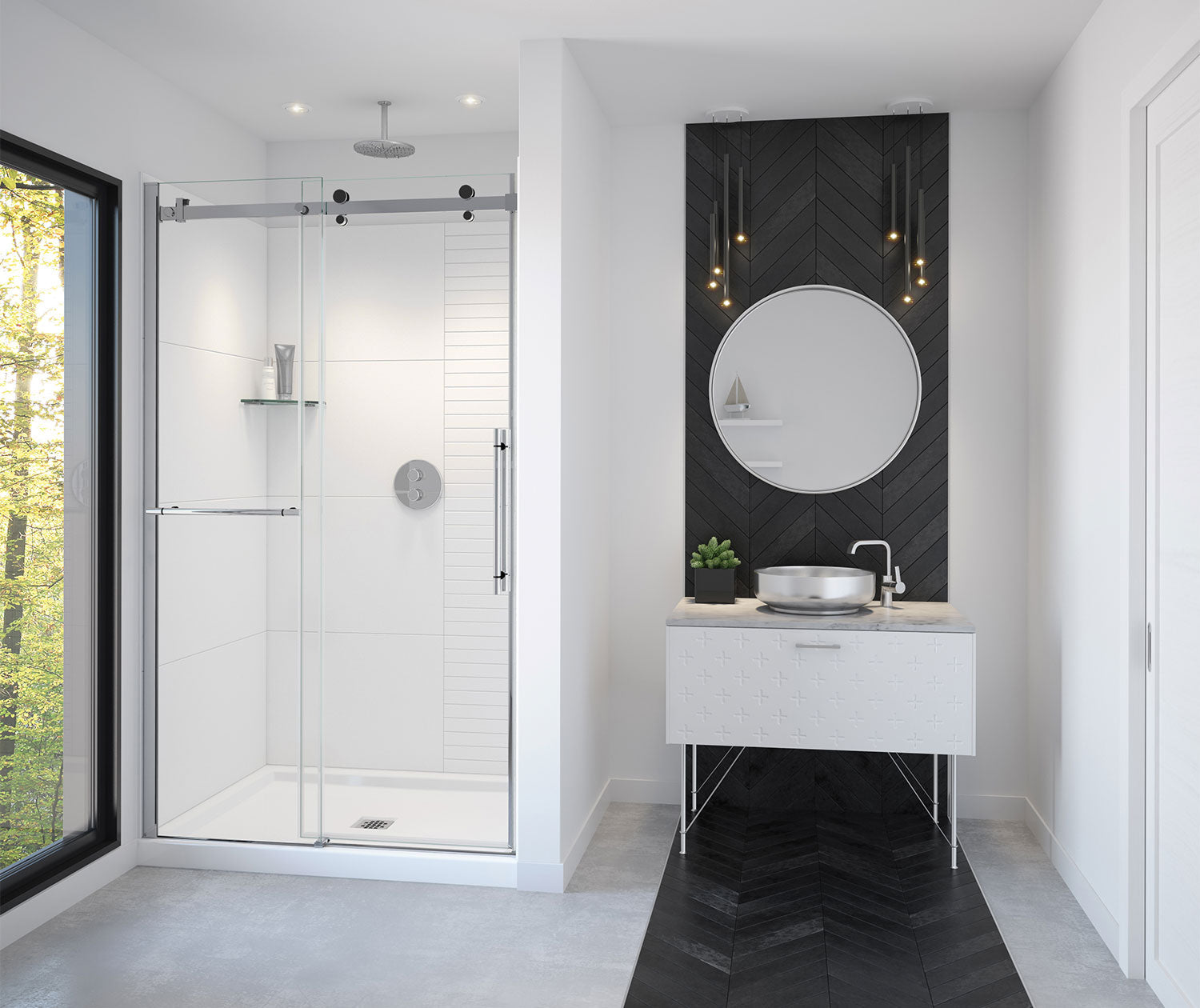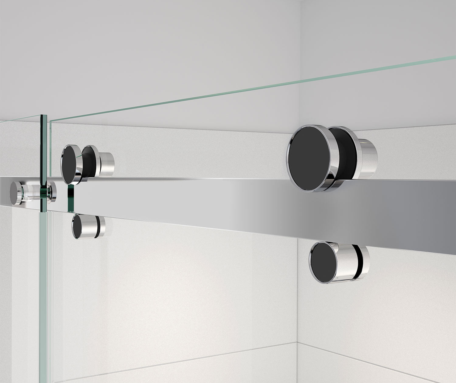 Vela 44 ½-47 x 78 ¾ in. 8mm Sliding Shower Door with Towel Bar for Alcove Installation with Clear glass in Chrome and Matte Black