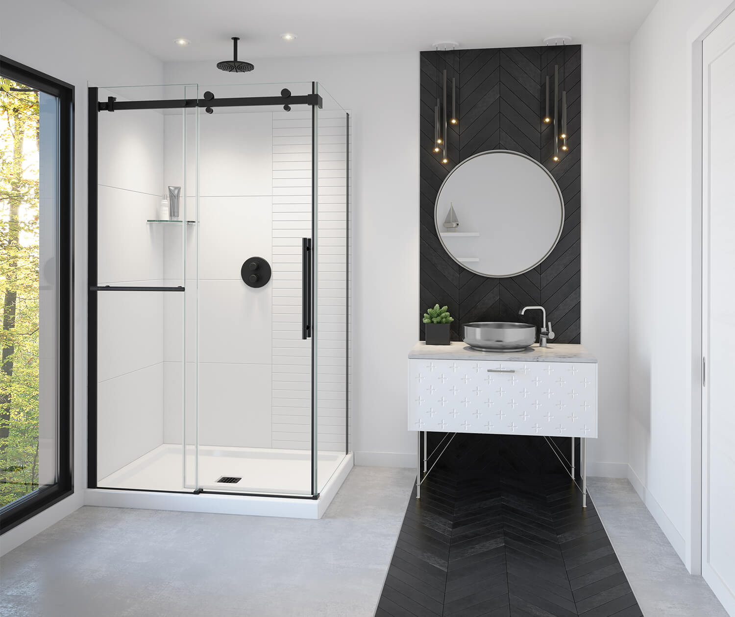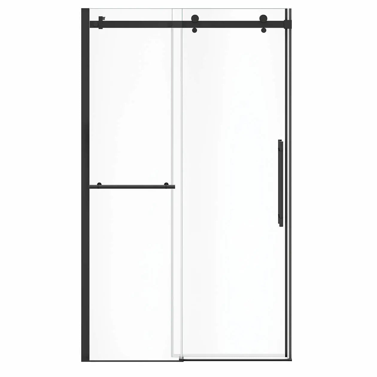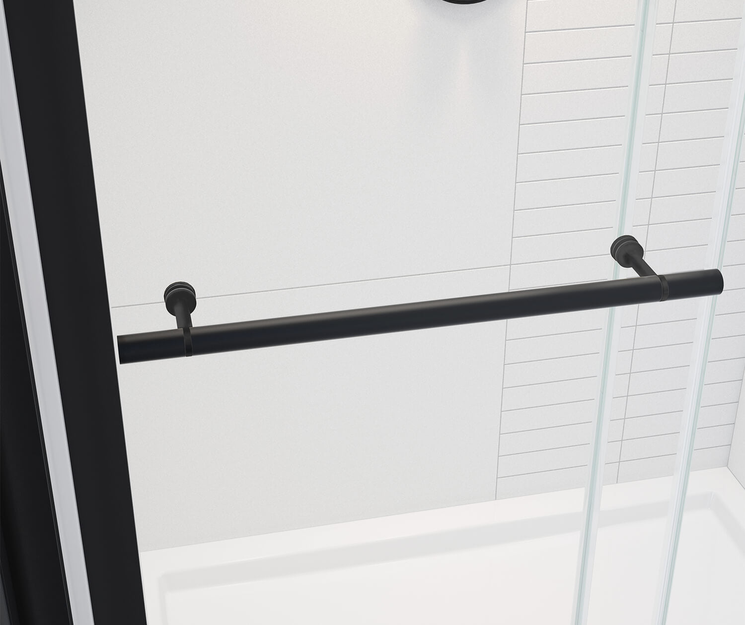 Vela 44 ½-47 x 78 ¾ in. 8mm Sliding Shower Door with Towel Bar for Alcove Installation with Clear glass in Matte Black