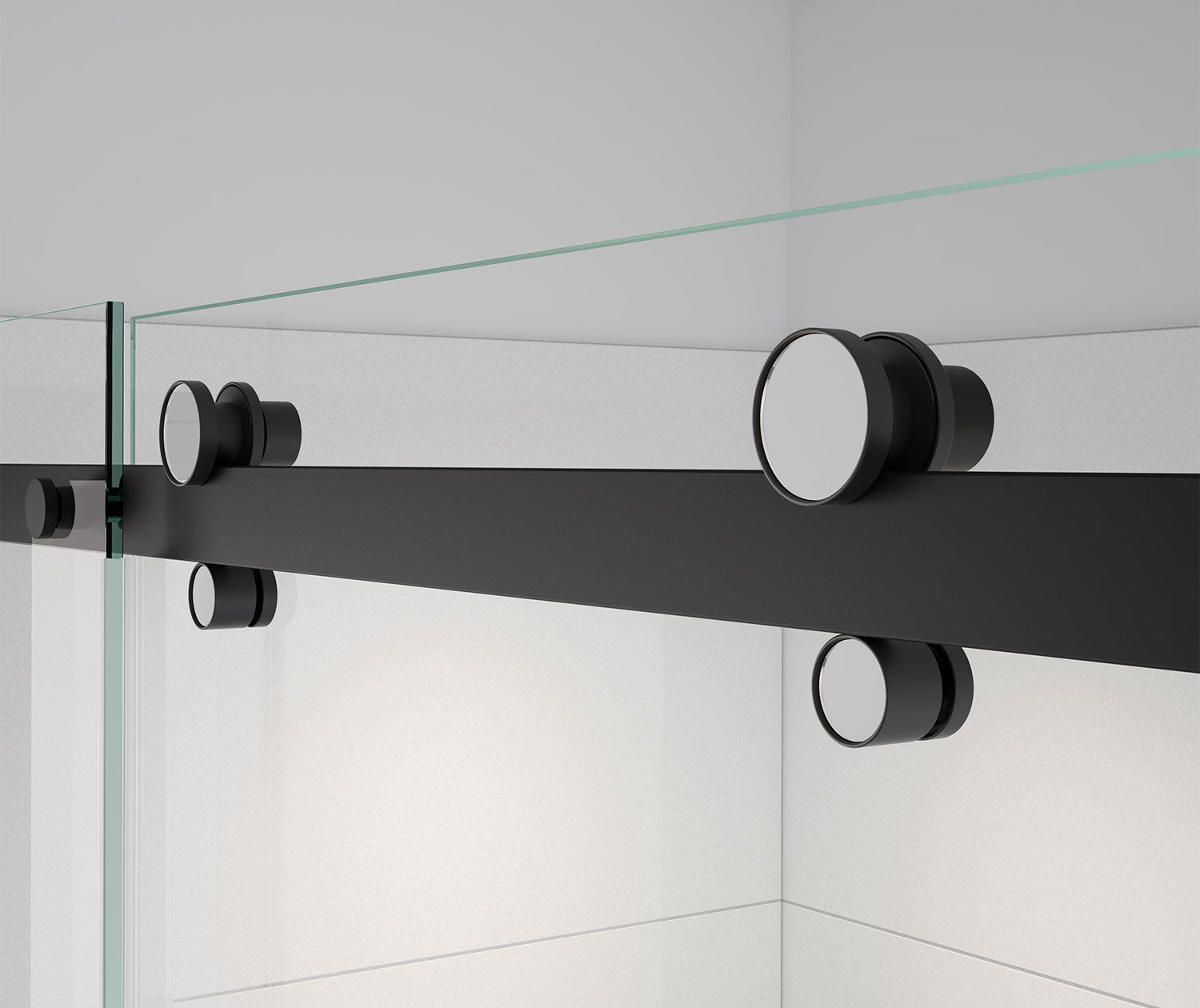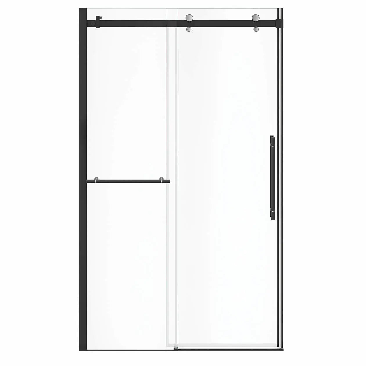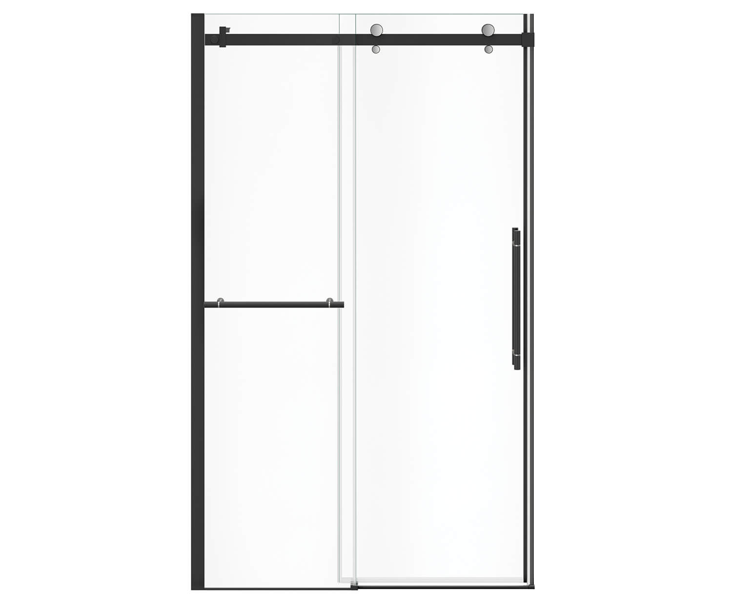 Vela 44 ½-47 x 78 ¾ in. 8mm Sliding Shower Door with Towel Bar for Alcove Installation with Clear glass in Matte Black and Chrome