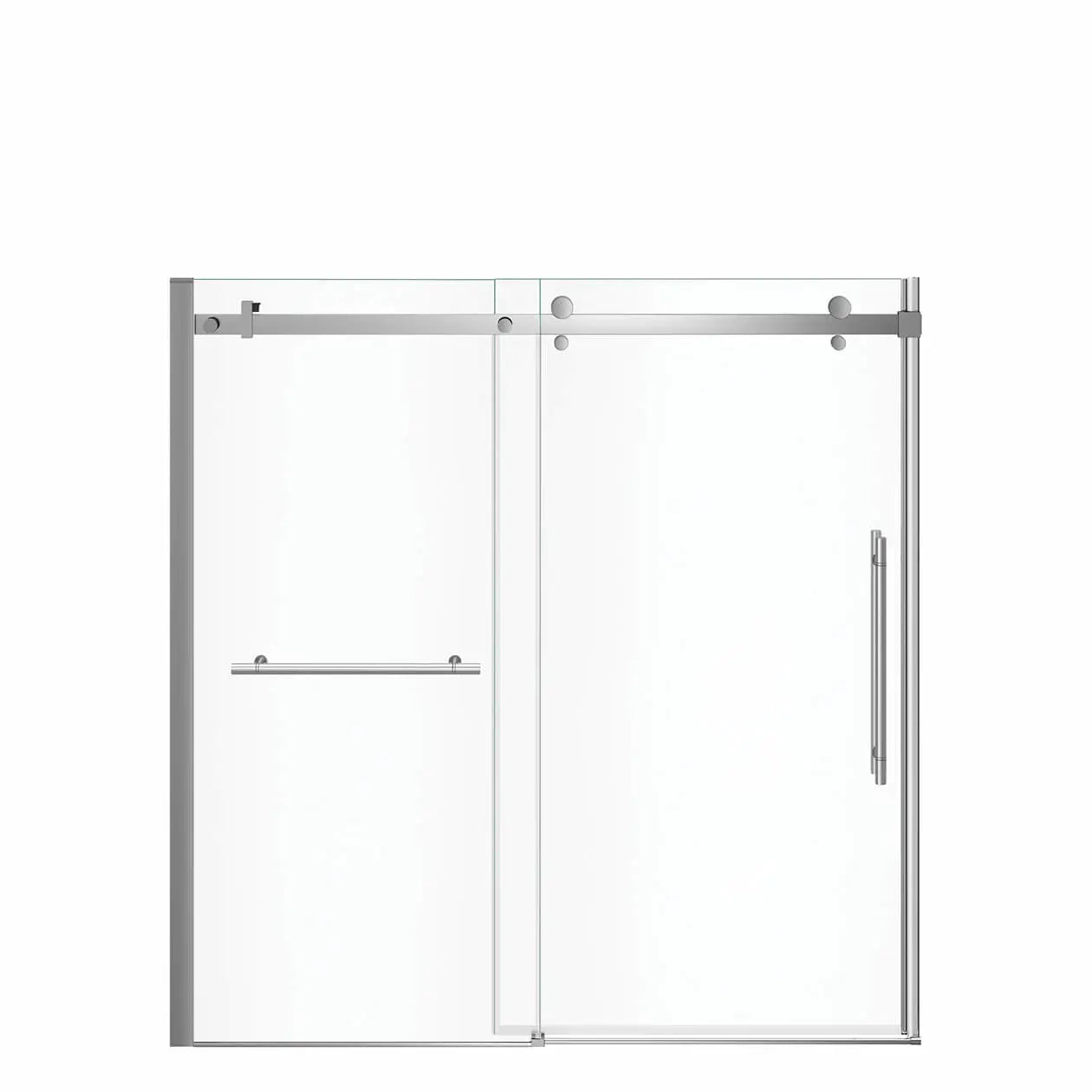 Vela 56 ½-59 x 59 in. 8 mm Sliding Tub Door with Towel Bar for Alcove Installation with Clear glass in Chrome - Plumbing Market