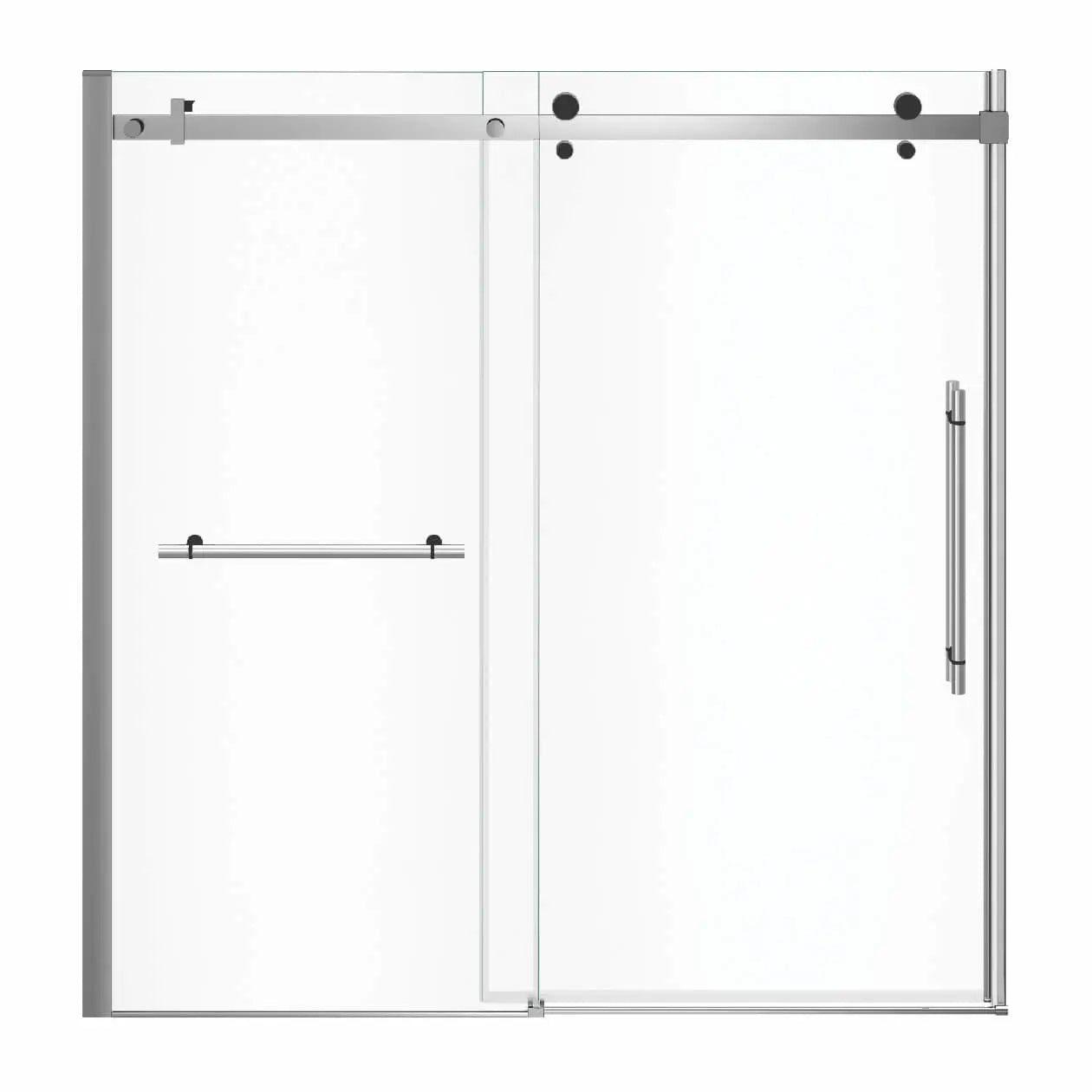 Vela 56 ½-59 x 59 in. 8 mm Sliding Tub Door with Towel Bar for Alcove Installation with Clear glass in Chrome and Matte Black