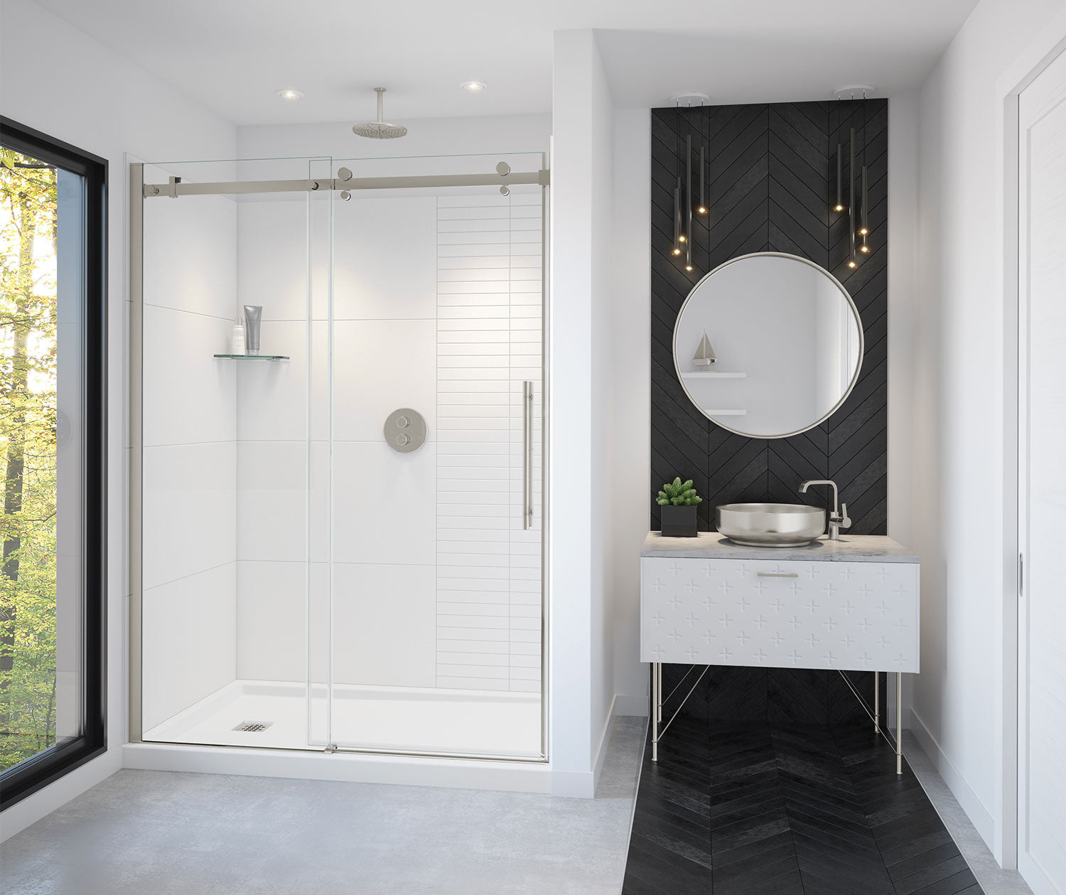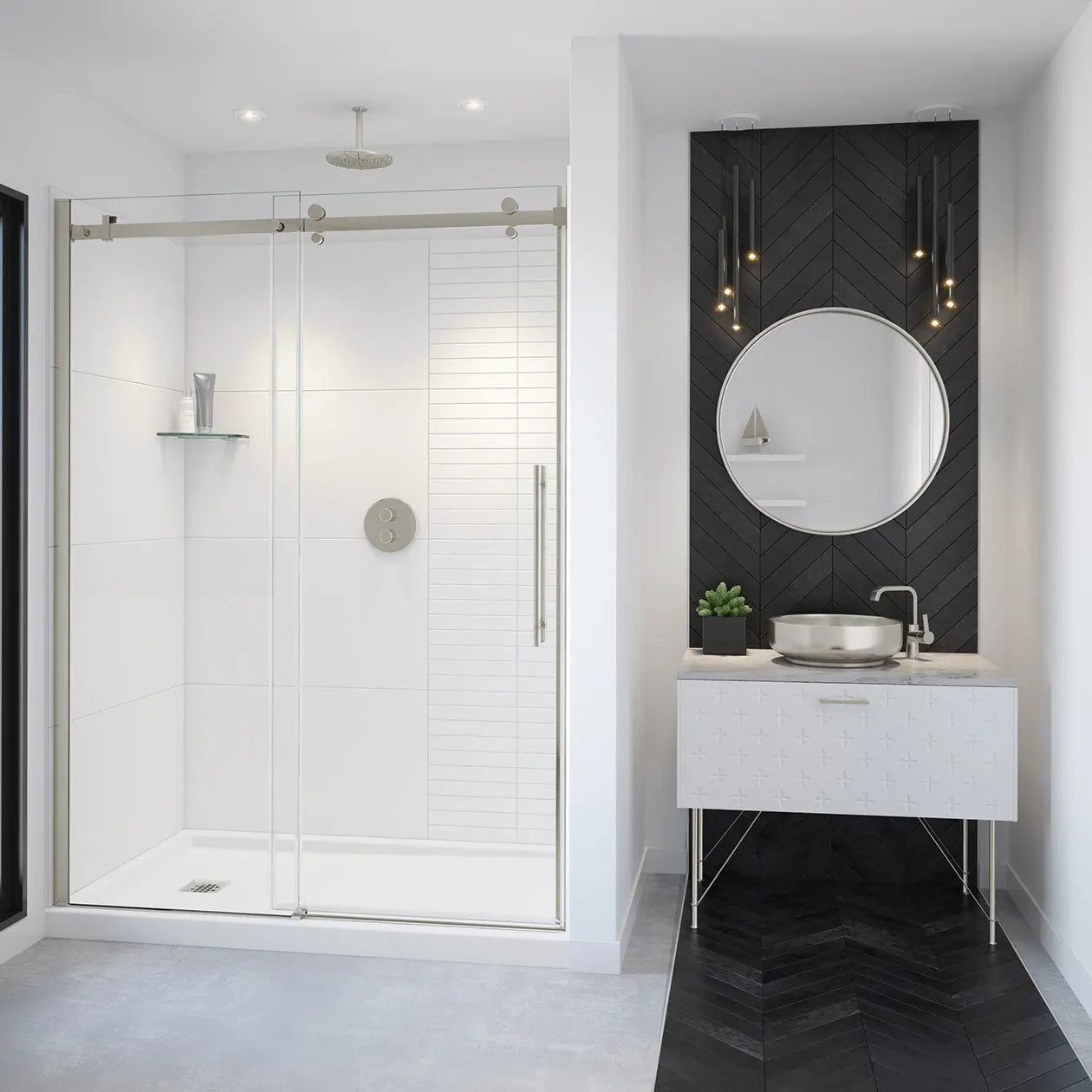 Vela 56 ½-59 x 78 ¾ in. 8mm Sliding Shower Door for Alcove Installation with Clear glass in Brushed Nickel